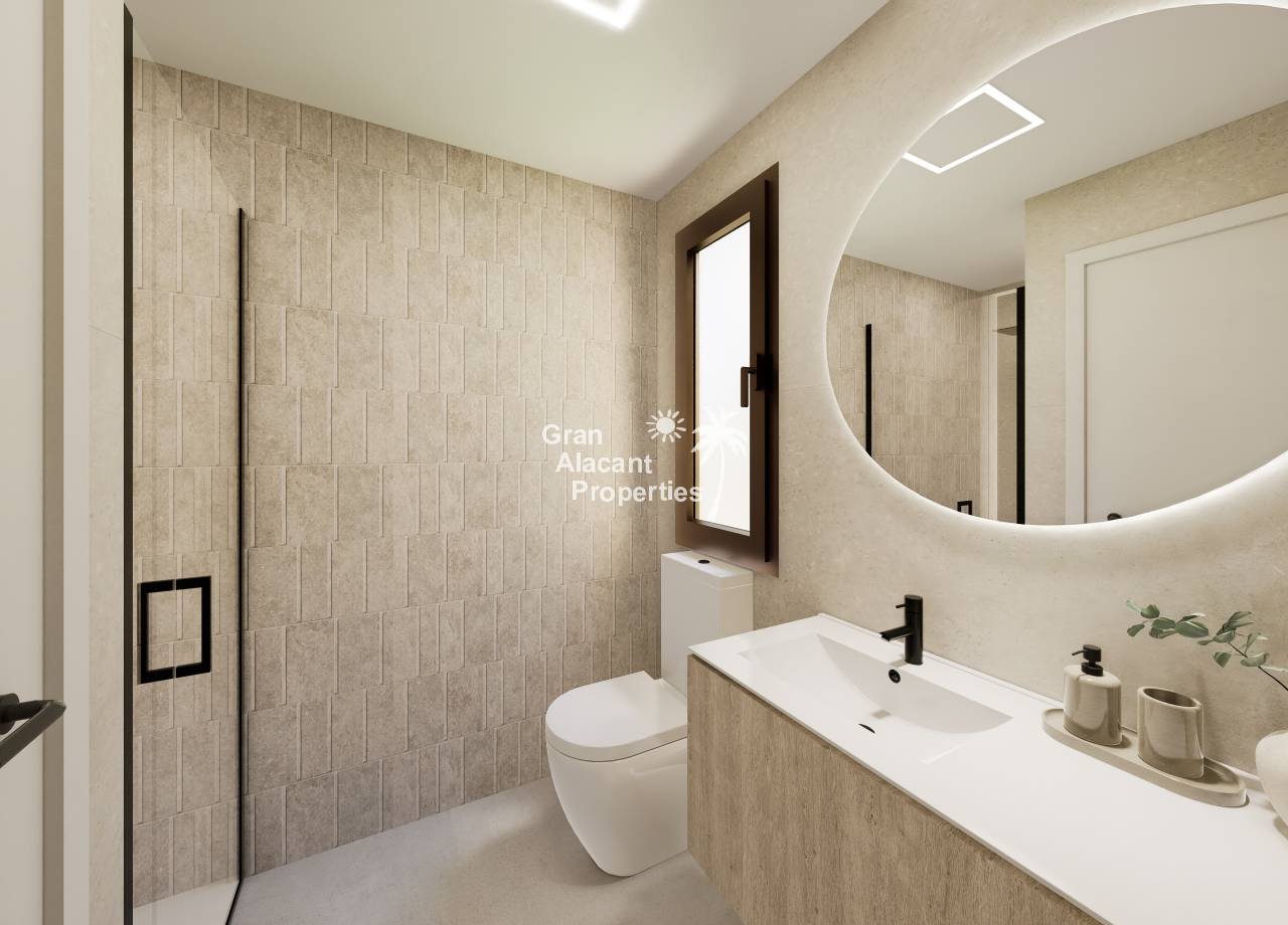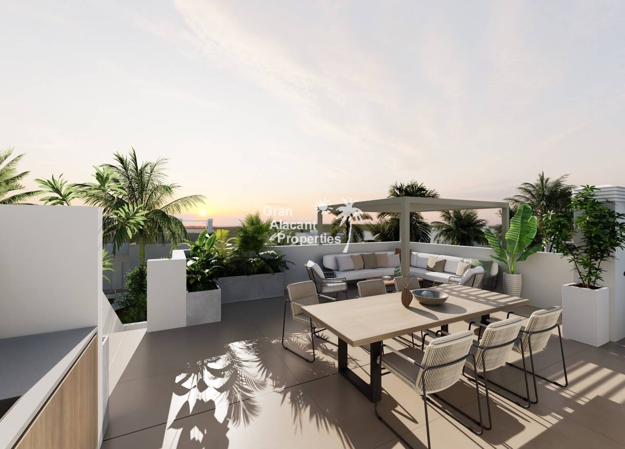 The exteriors of these bungalows are designed to maximize enjoyment of the Mediterranean climate. Each property features a private garden, perfect for creating a personal green space or enjoying outdoor moments. Additionally, the terraces offer an ideal place to relax, sunbathe, or share outdoor meals with family and friends. The inclusion of a solarium provides additional space to enjoy panoramic views and the sun year-round. These outdoor elements are designed to complement the outdoor lifestyle characteristic of the region.