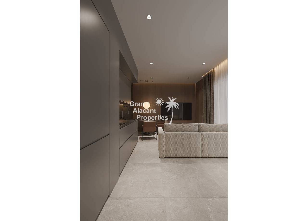 The interiors of the apartments are designed to offer maximum comfort and functionality. Each unit features one bedroom and one bathroom, ideal for couples or individuals seeking a cozy space. The porcelain tile floors add a touch of elegance and are easy to maintain. Electric blinds and air conditioning ensure a comfortable environment year-round. Additionally, built-in wardrobes provide efficient storage space, keeping the home organized and tidy. The layout is designed to make the most of the available space, creating a welcoming and functional environment.