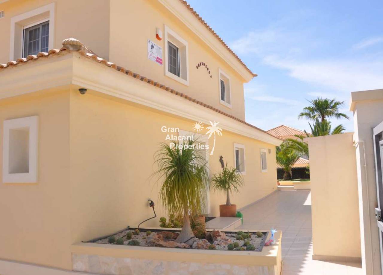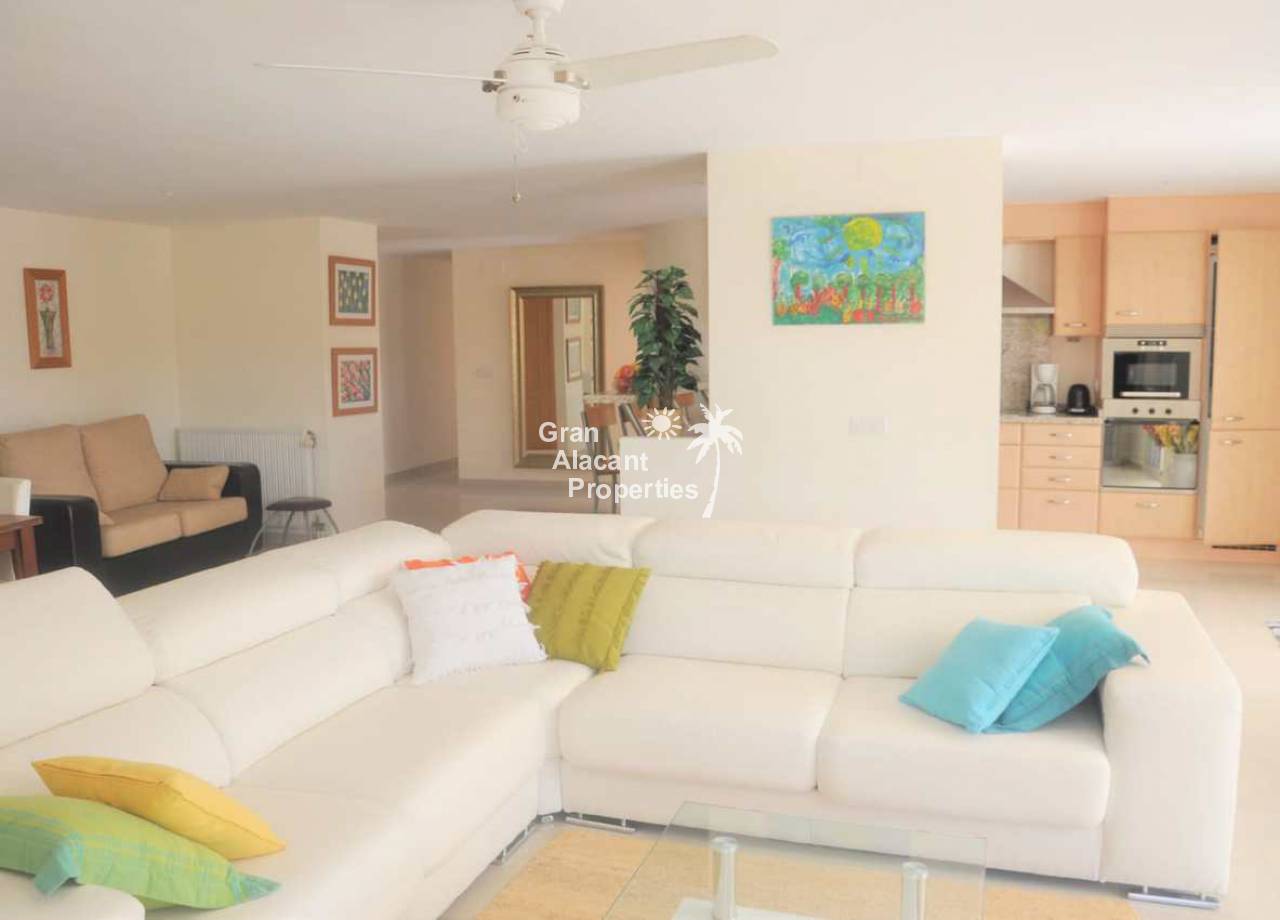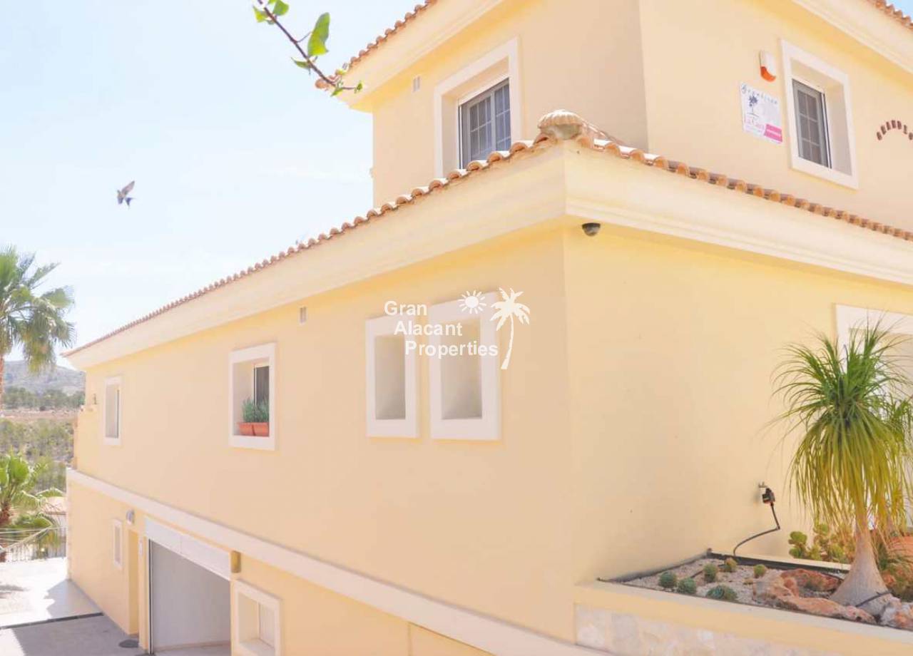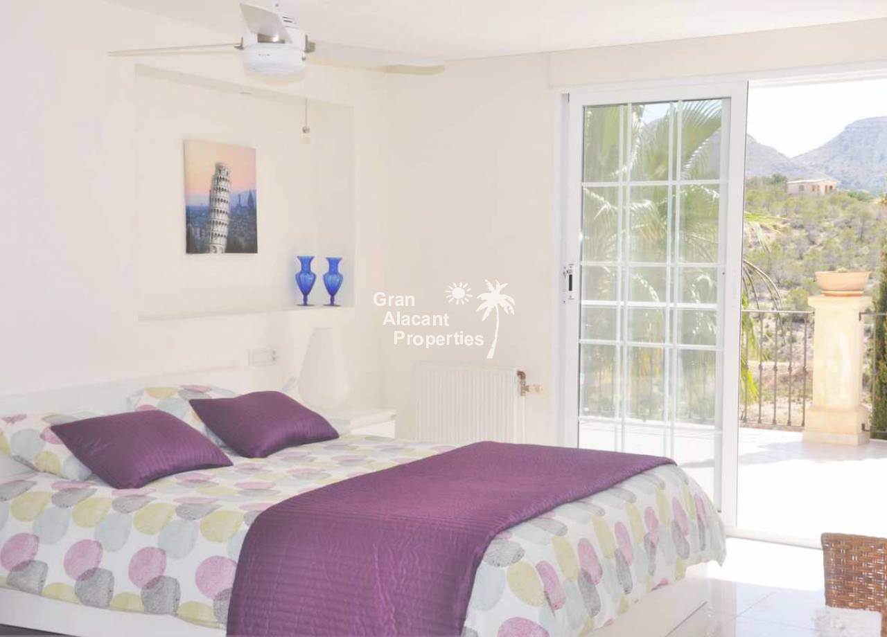 Large detached villa for sale in Busot on Spain's sunny Costa Blanca. This luxury home enjoys amazing views of the mountains, green spaces, the Med, Playa San Juan, El Campello and more.  The property offers 554 m2 of living space with over 200 m2 of exterior space in several terraces all with impressive views.