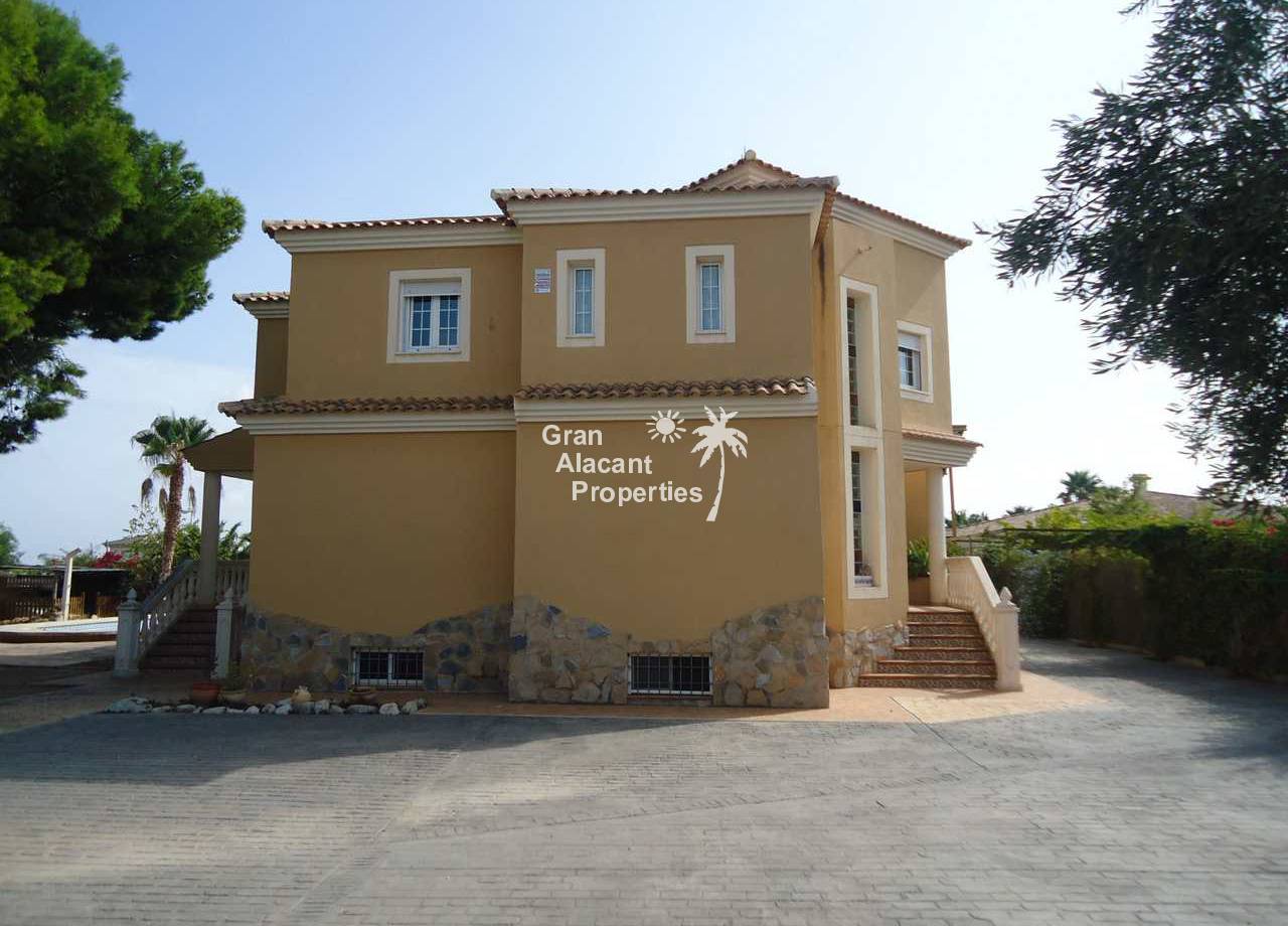 Detached villa with private pool for sale in the exclusive Rio Park neighborhood of Muchamiel near the city of Alicante on Spain's Costa Blanca. Built in 2001, this spacious and luxurious property offers 460 m2 of living space over 2 floors plus a basement.