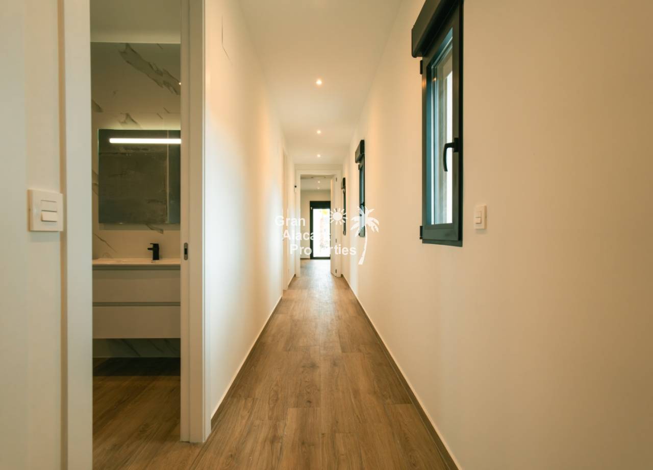 Inside, the home features three bedrooms and two bathrooms, offering a comfortable and functional space. The kitchen is equipped with modern appliances, ensuring convenience in daily life. Air conditioning and pre-installation of air conditioning guarantee a pleasant environment throughout the year. Built-in wardrobes provide efficient storage, maintaining order and organization in the home.