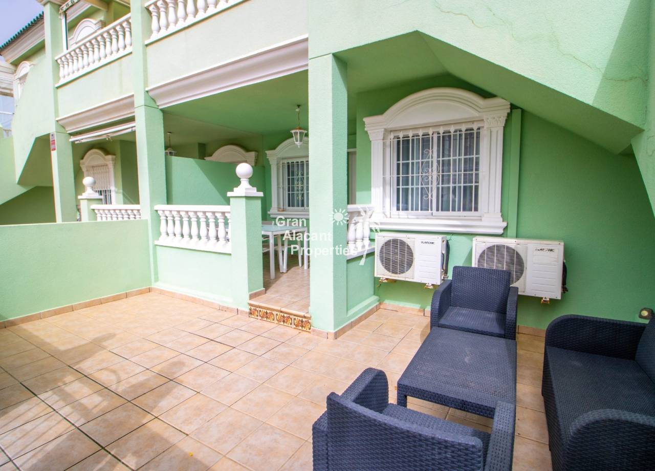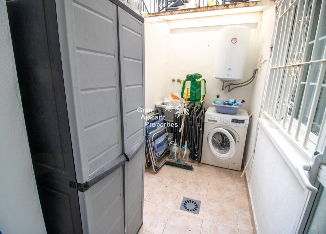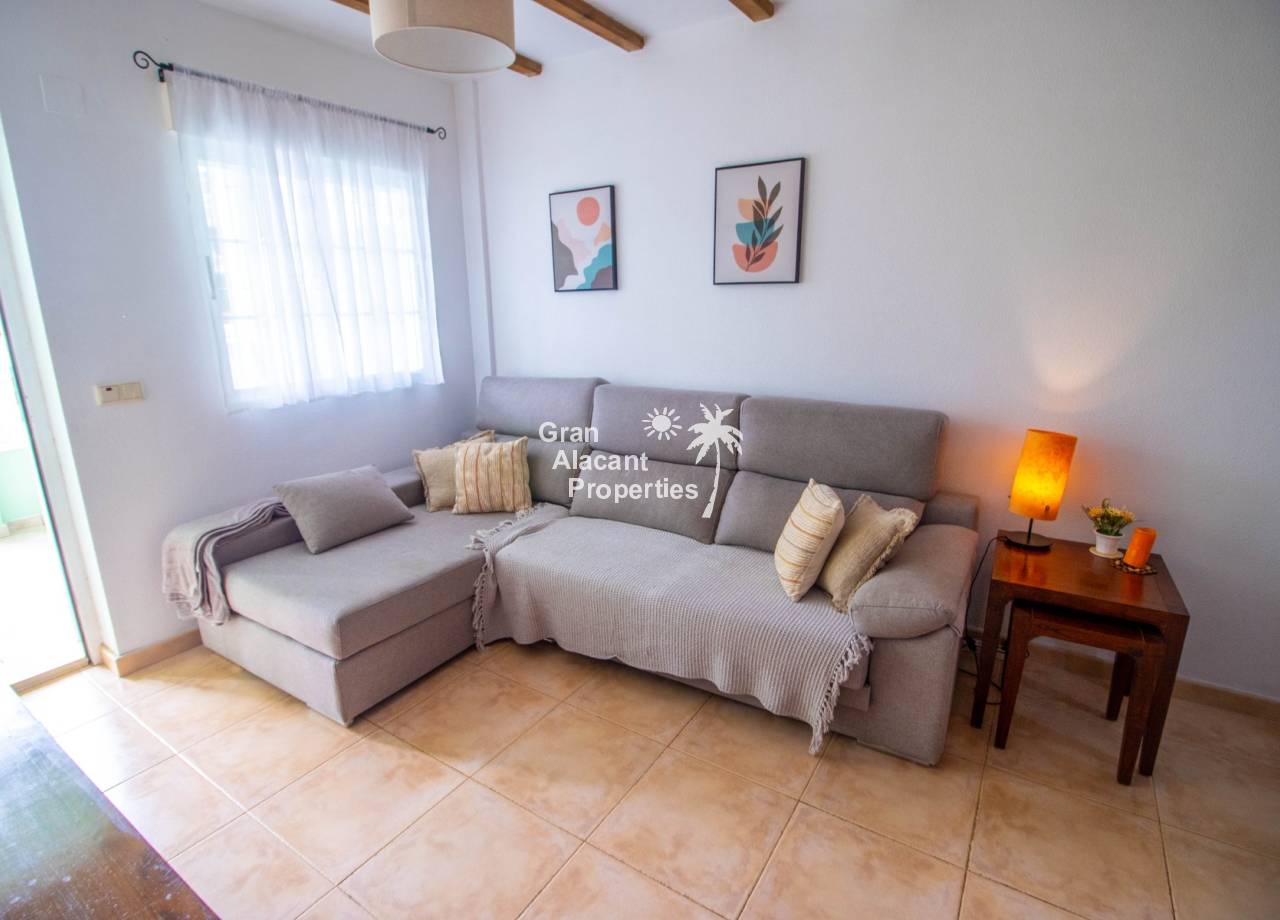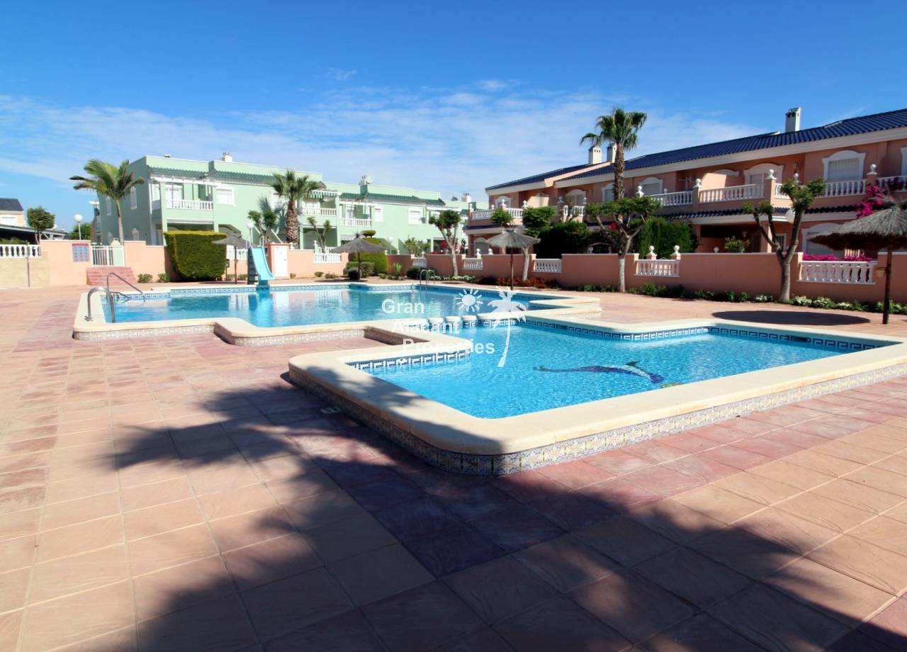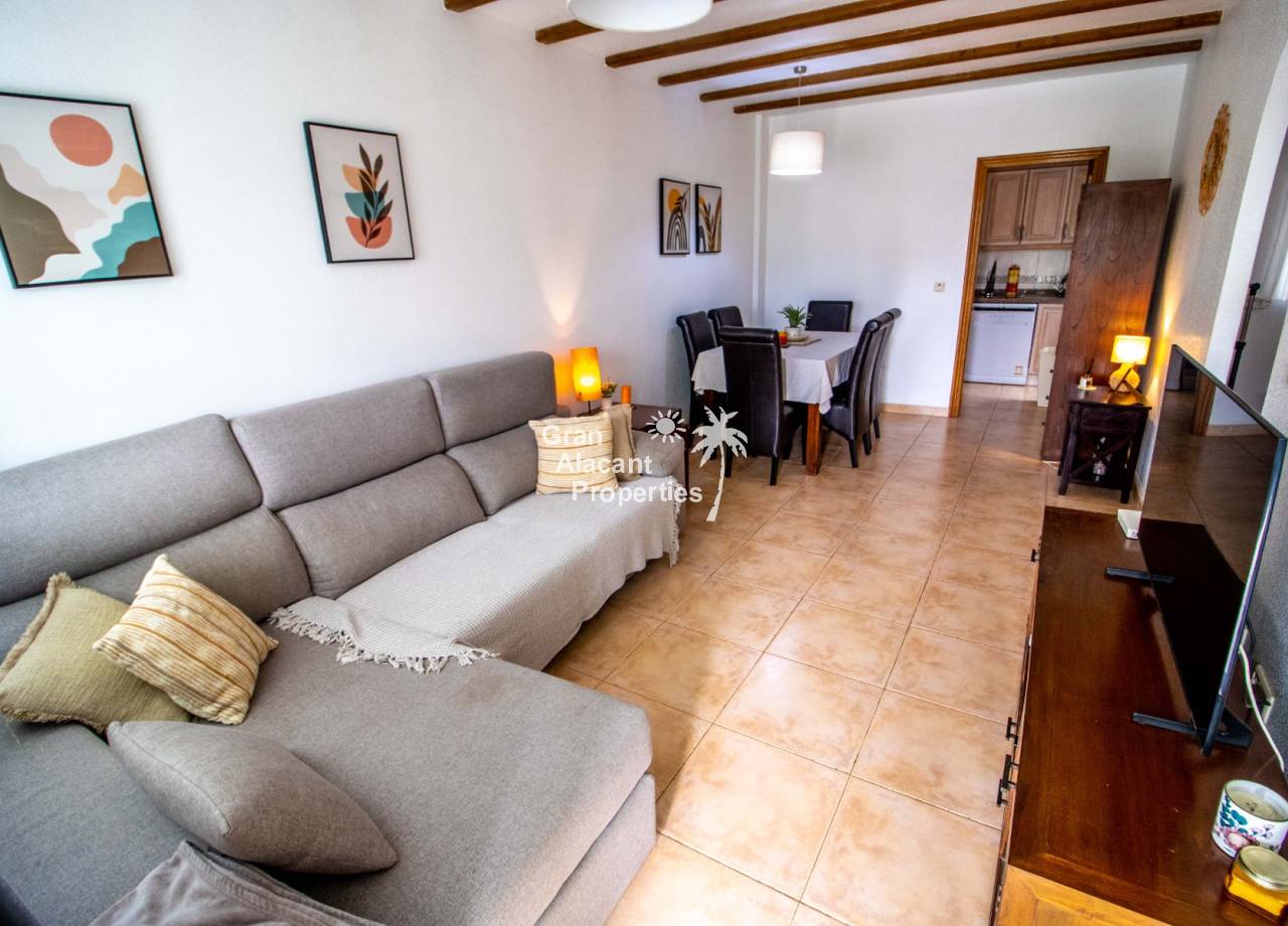 This south-facing ground-floor Mediterráneo apartment enjoys a prime position overlooking the communal pool in the sought-after gated community of Mediterráneo II in Lower Gran Alacant. With 55 m² of interior space, generous outdoor areas, and an unbeatable walkable location close to nature, everyday amenities, and the beach, this well-maintained property makes a wonderful holiday home, lock-up-and-leave retreat, or comfortable year-round residence. From sunny morning coffee on the terrace overlooking the pool to relaxed evenings dining in the garden after a day at the beach, this home captures the easygoing Mediterranean lifestyle people come to Gran Alacant to enjoy.