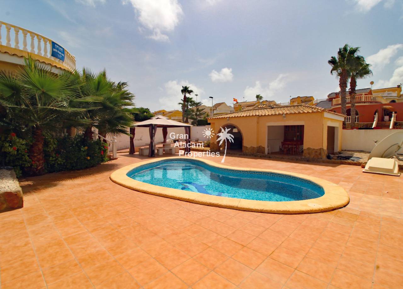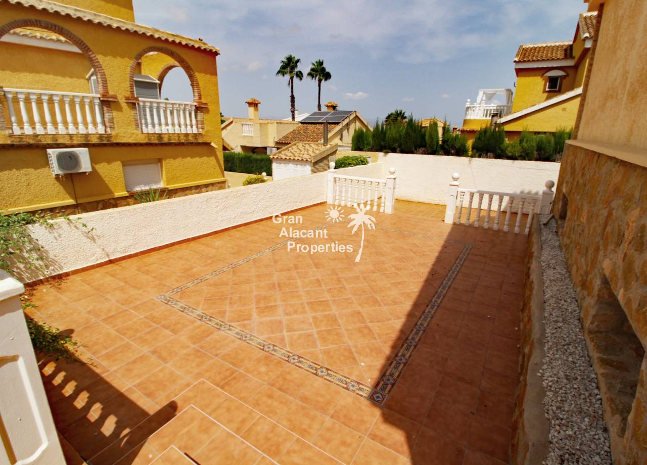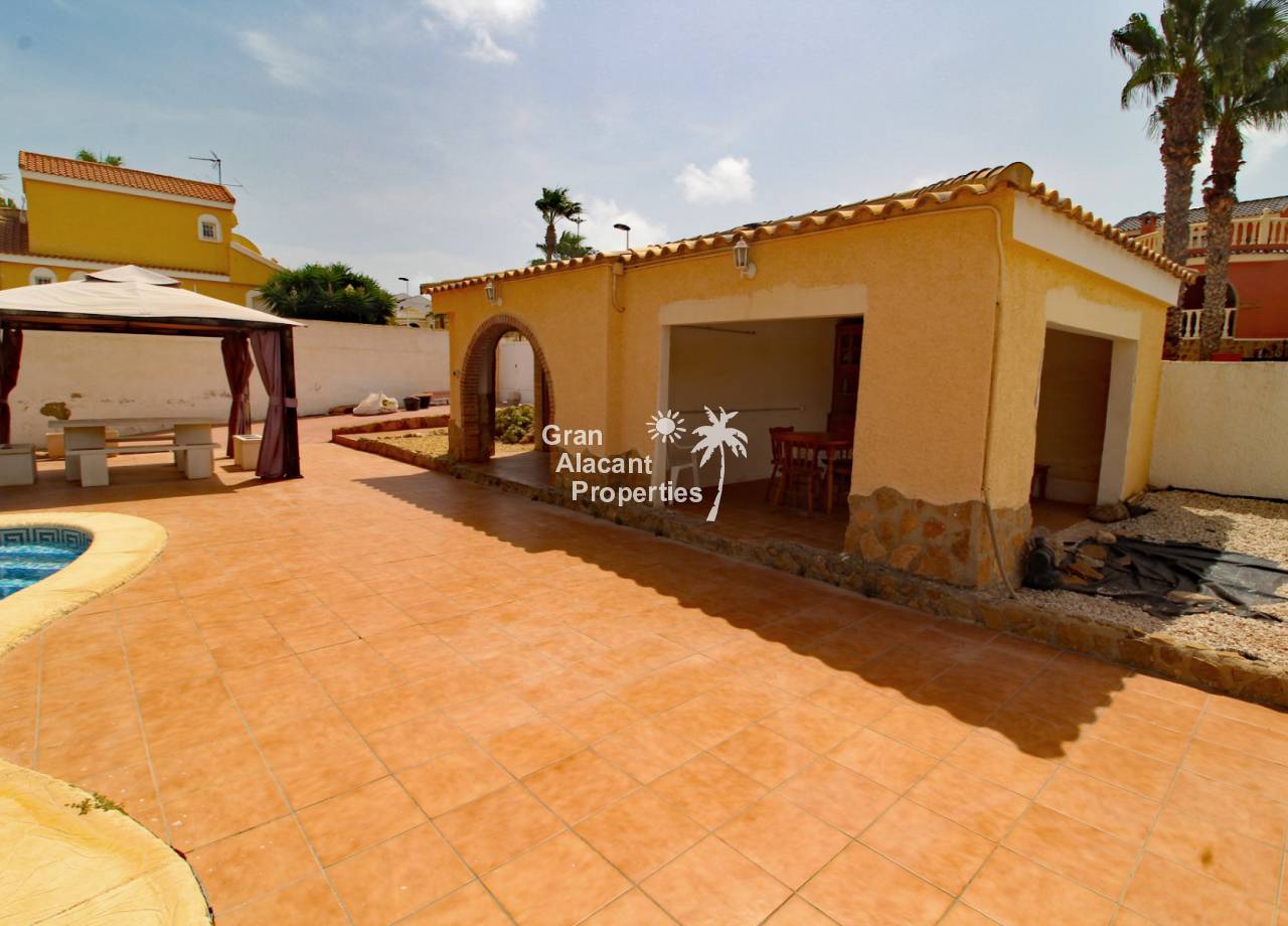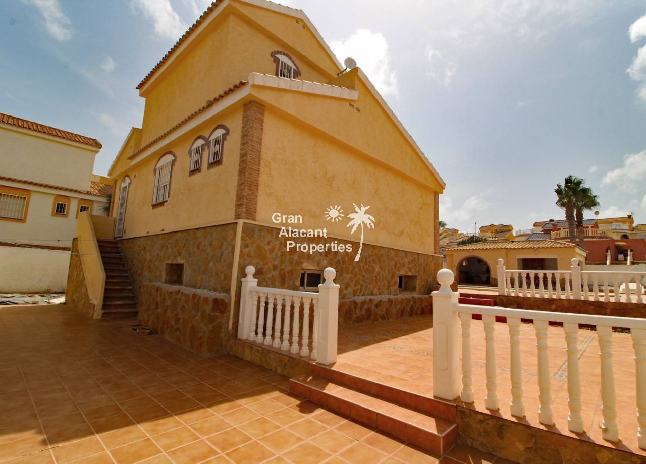 Located in the sought after Monte y Mar bajo neighbourhood of Gran Alacant on Spain's sunny Costa Blanca, close to the Plaza Mayor with its international supermarket, bars and restaurants, this gorgeous south facing detached "Esmeralda" style villa comes with a private swimming pool and a garage / workshop and is ready to move into and live the dream.
