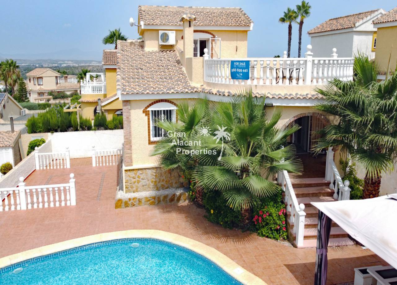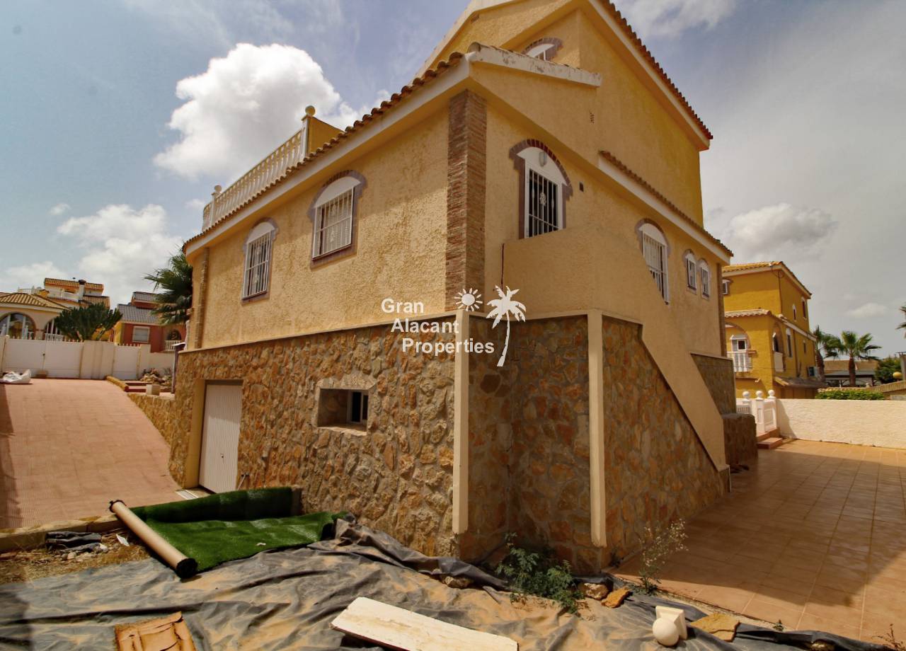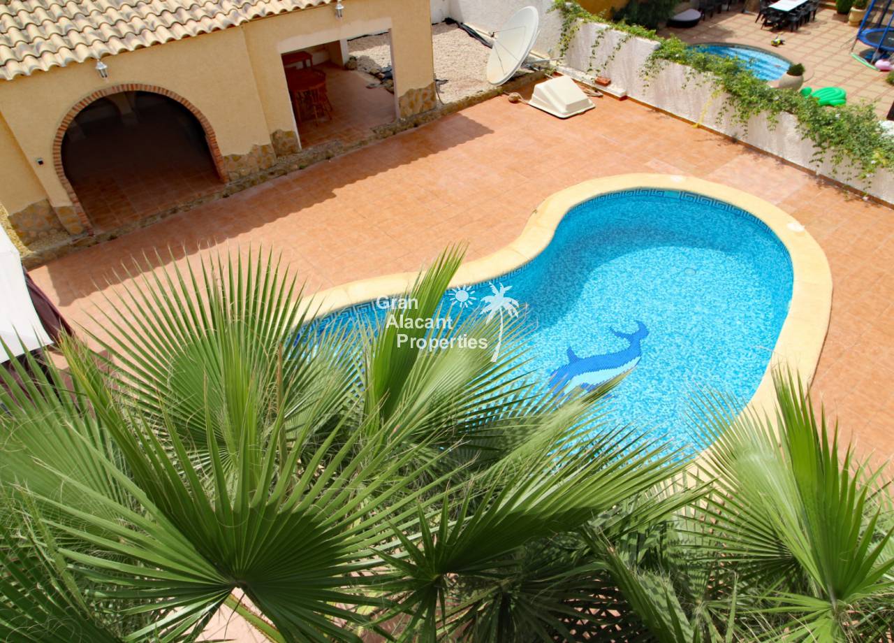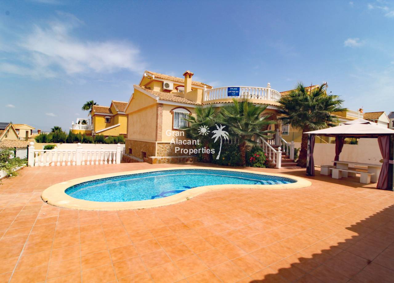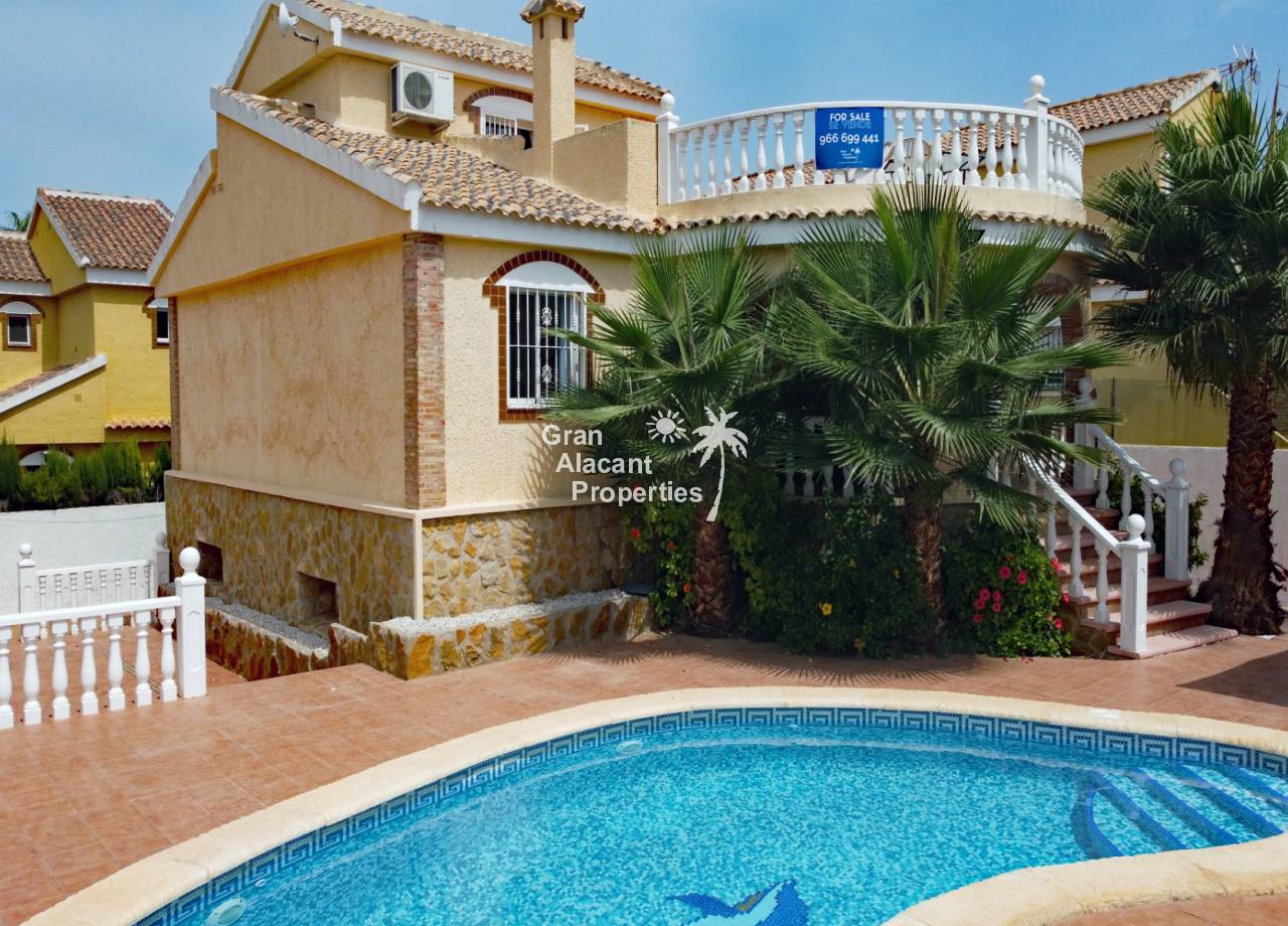 Located in the sought after Monte y Mar bajo neighbourhood of Gran Alacant on Spain's sunny Costa Blanca, close to the Plaza Mayor with its international supermarket, bars and restaurants, this gorgeous south facing detached "Esmeralda" style villa comes with a private swimming pool and a garage / workshop and is ready to move into and live the dream.