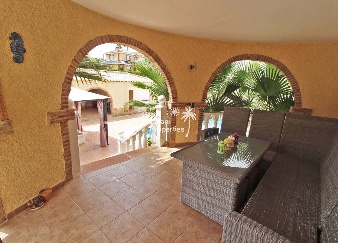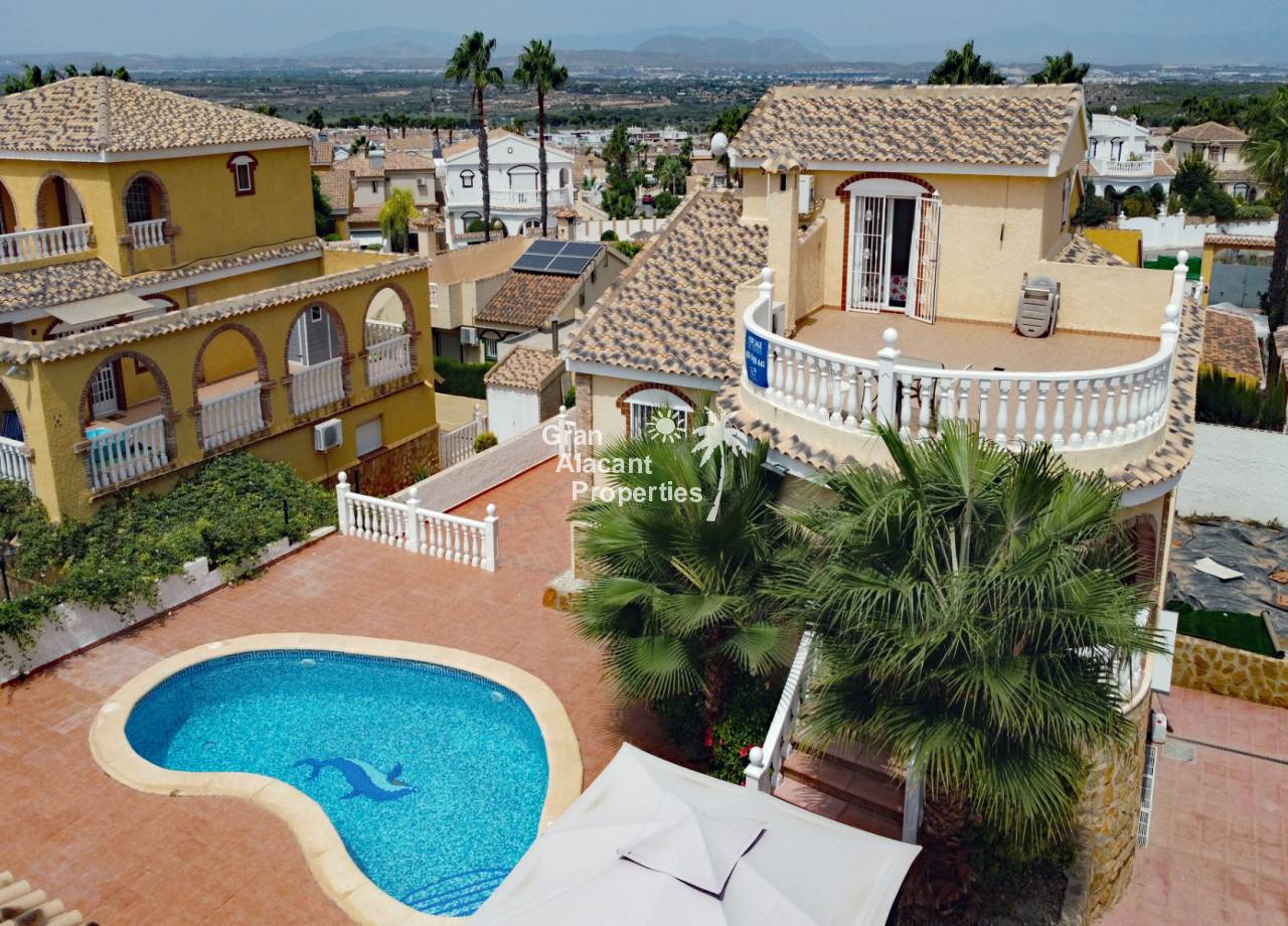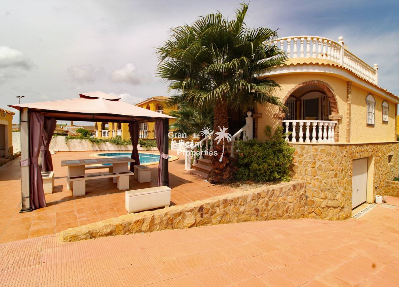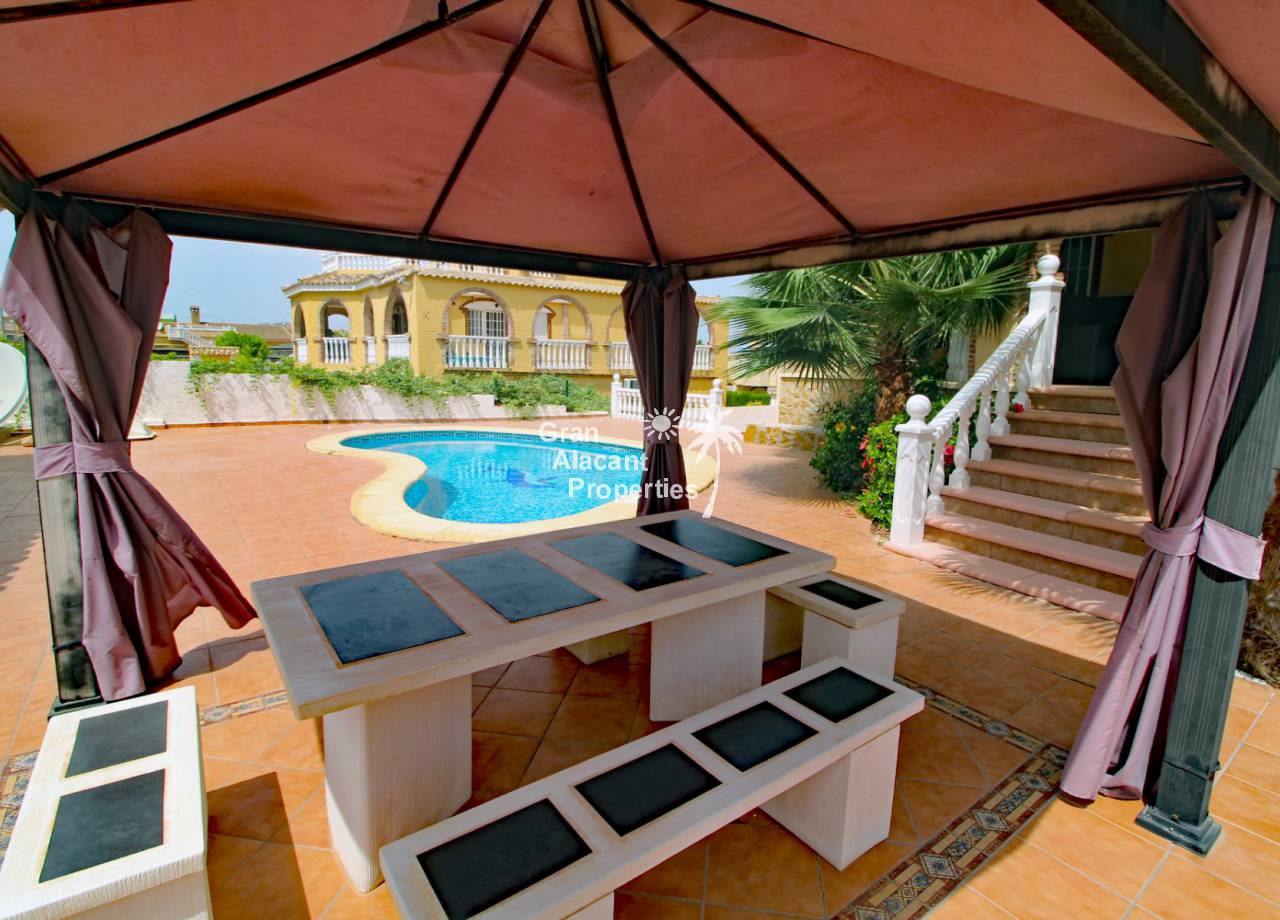 Located in the sought after Monte y Mar bajo neighbourhood of Gran Alacant on Spain's sunny Costa Blanca, close to the Plaza Mayor with its international supermarket, bars and restaurants, this gorgeous south facing detached "Esmeralda" style villa comes with a private swimming pool and a garage / workshop and is ready to move into and live the dream.