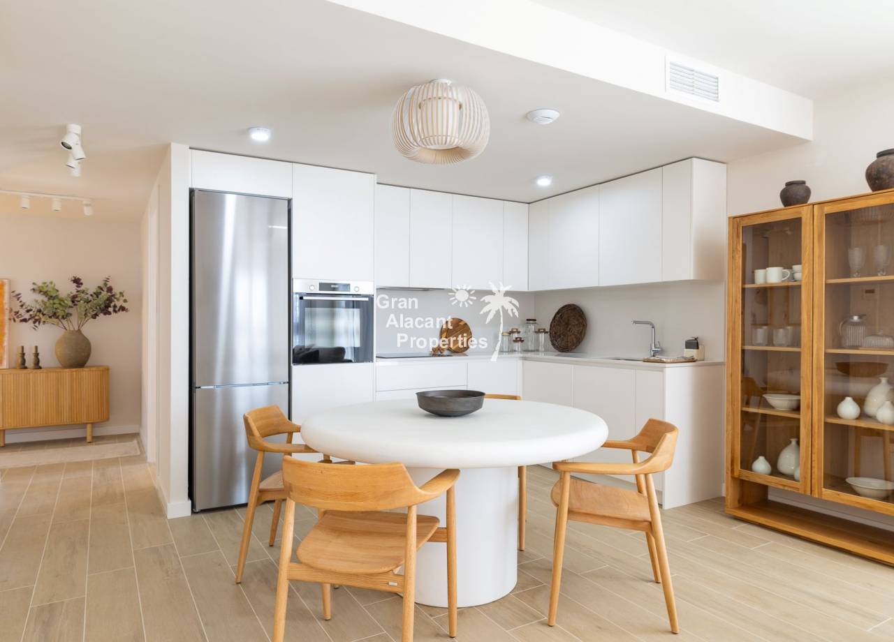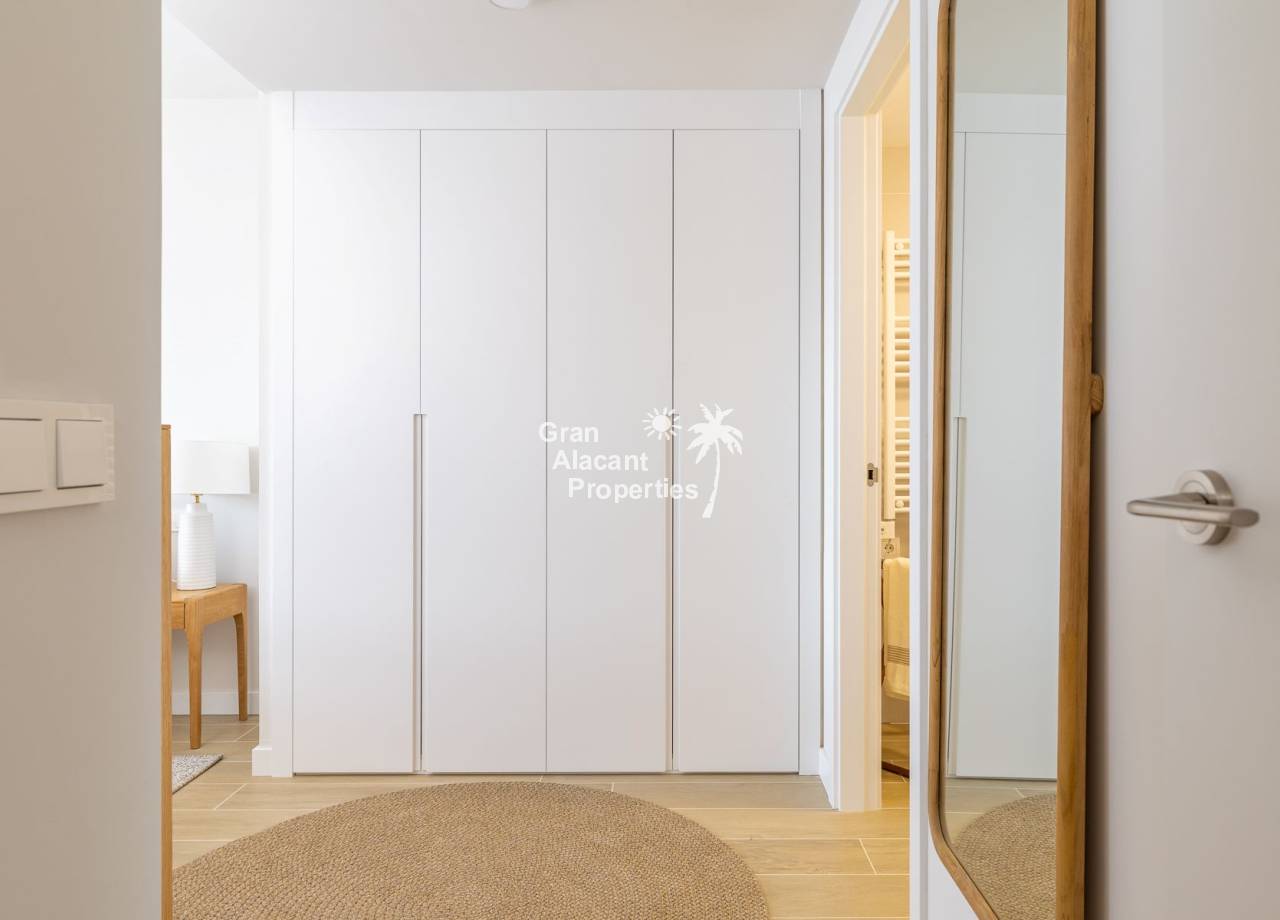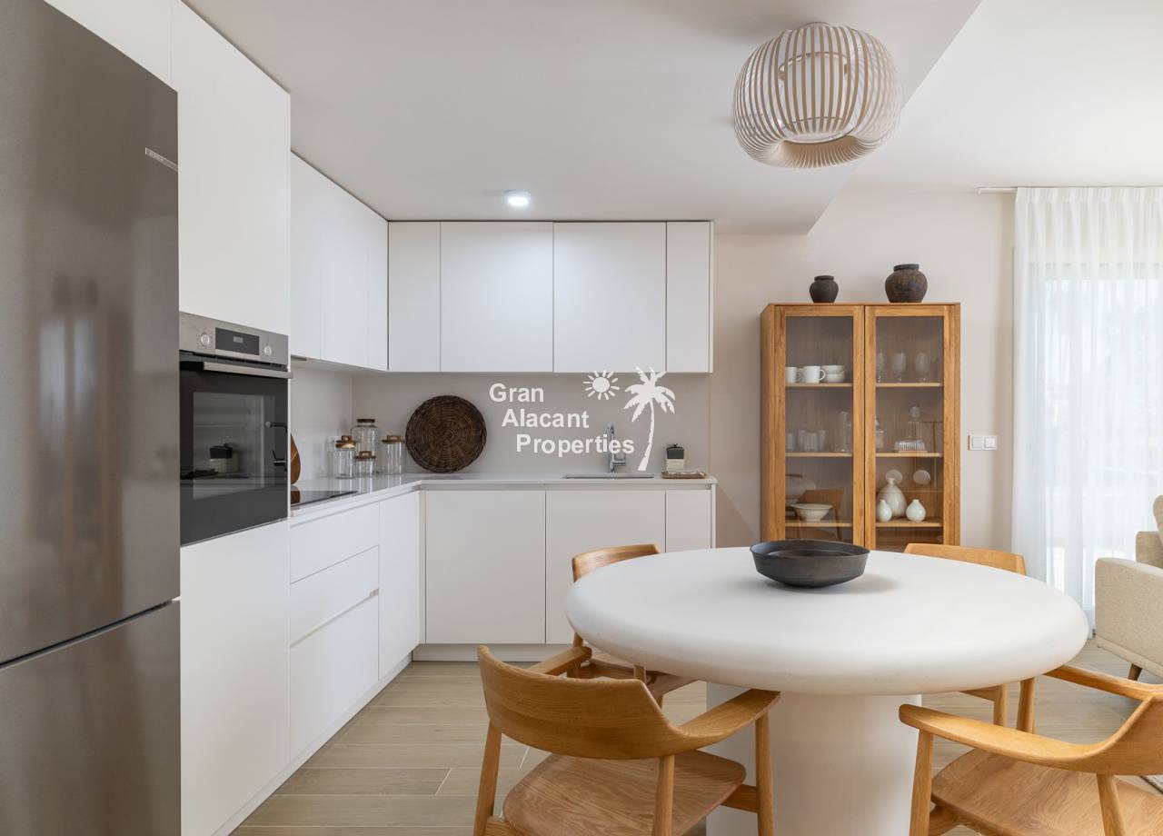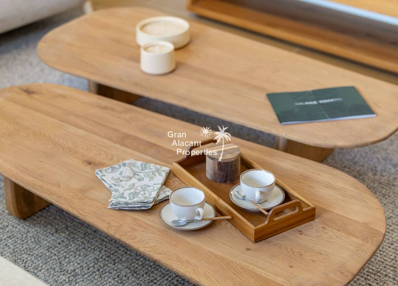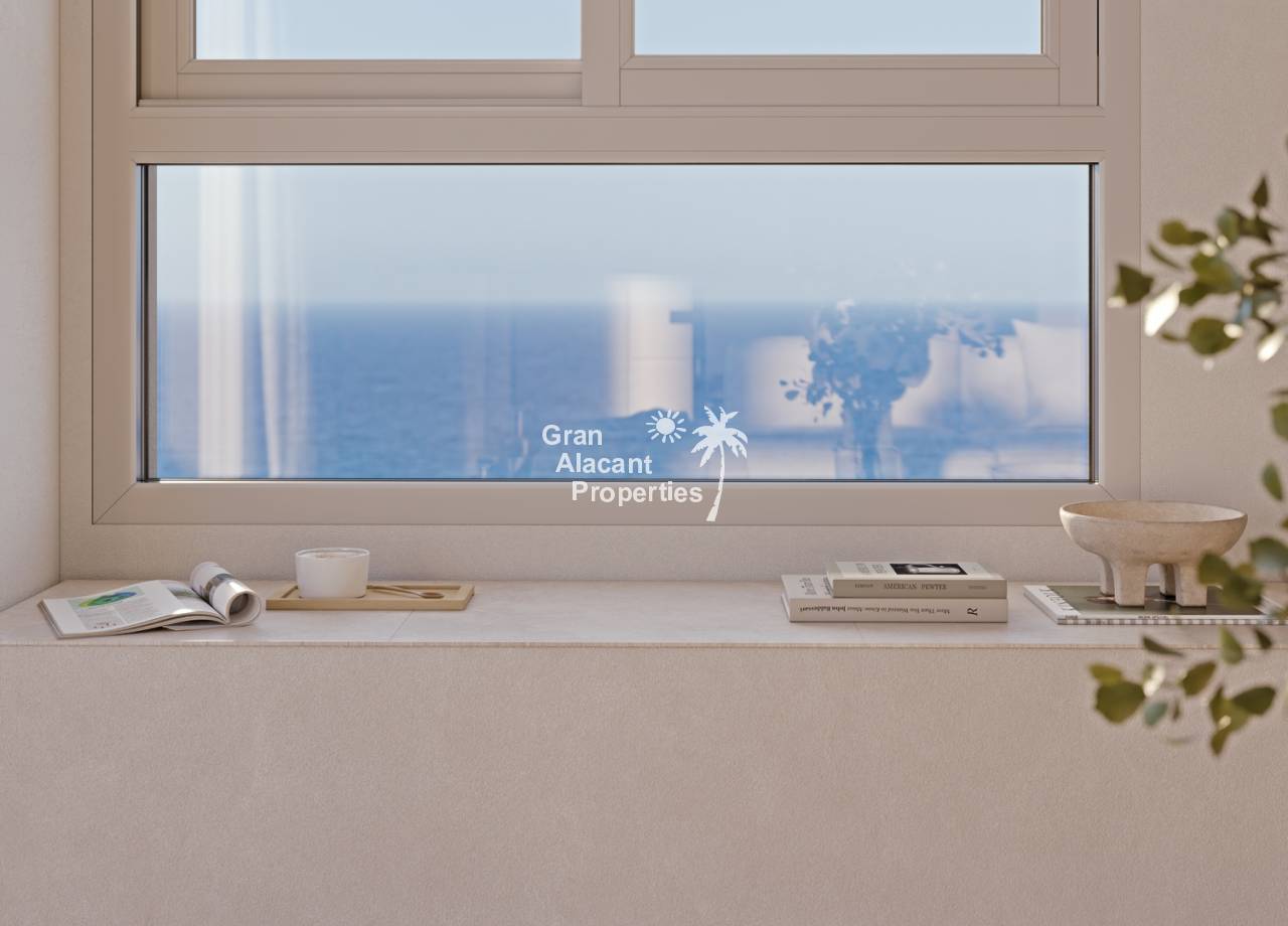 The exteriors of these properties are designed to maximize enjoyment of the Mediterranean climate. Each home features a private terrace, perfect for relaxing outdoors and enjoying the sea views. Additionally, some properties include a solarium, offering additional space for leisure and relaxation. For those who value privacy, certain homes have a private pool, ideal for cooling off on hot days. The complex is also equipped with facilities for charging electric cars, reflecting a commitment to sustainability and resident convenience.