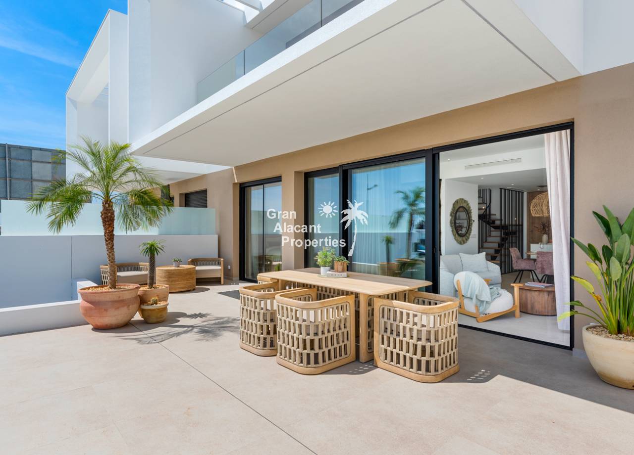 The townhouses feature outdoor spaces that invite enjoyment of the Mediterranean climate. Each property has a private garden, ideal for outdoor activities or simply relaxing. Additionally, the terraces offer extra space for enjoying leisure moments outdoors. The inclusion of a private pool in each home adds a touch of luxury and exclusivity, allowing for refreshing dips during hot summer days.