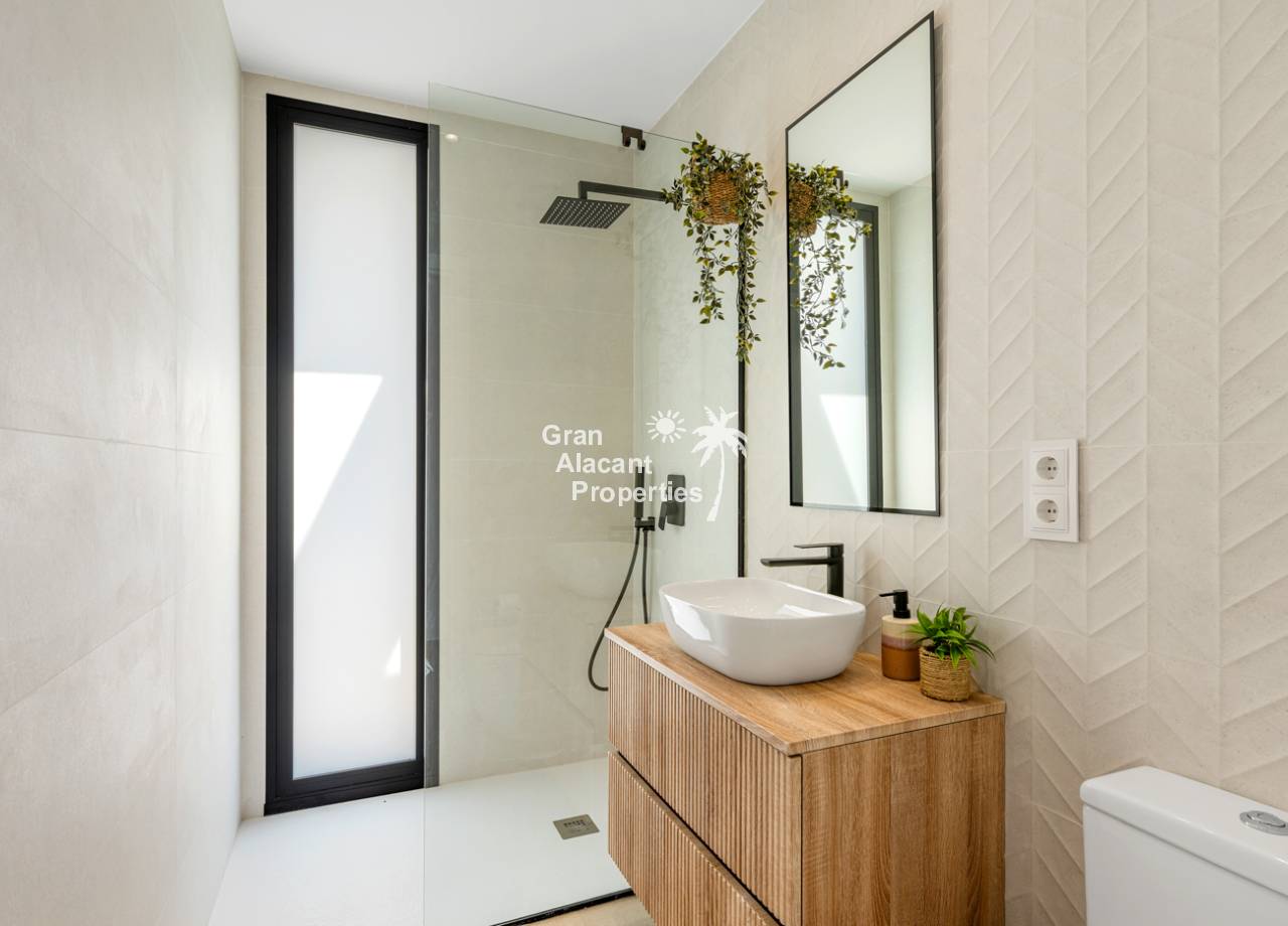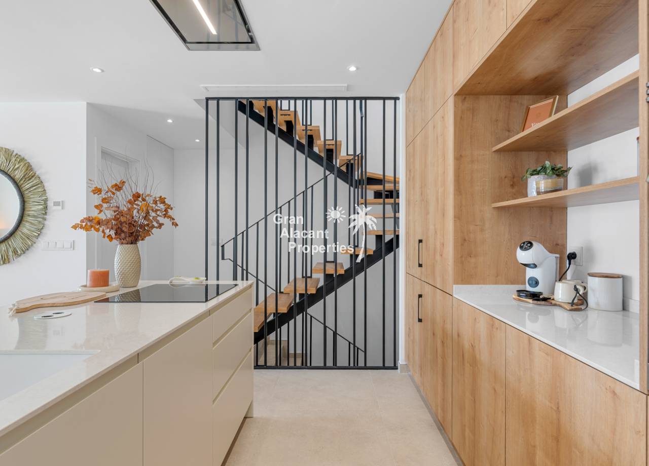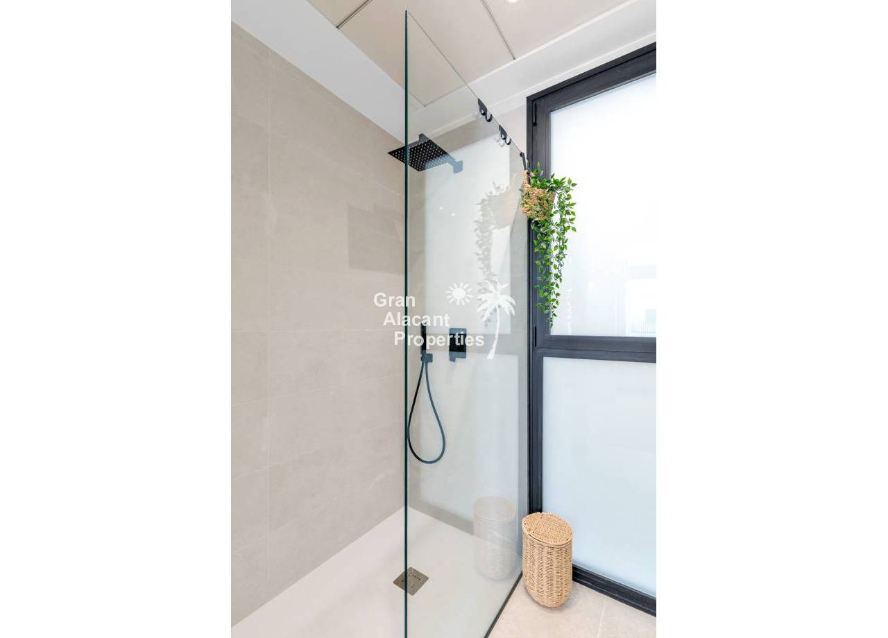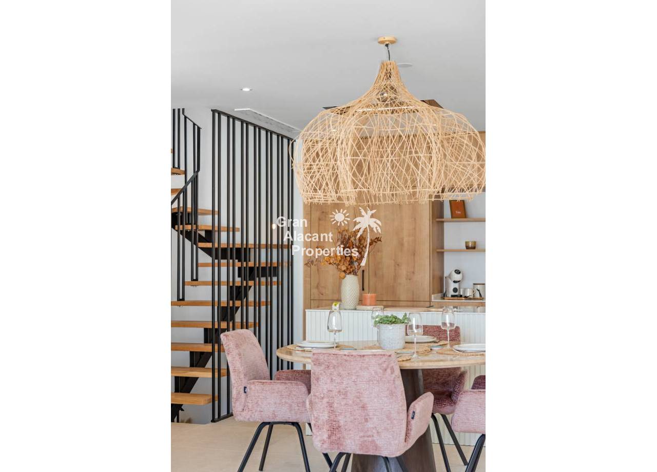 The interior of the townhouses is designed with comfort and modernity in mind. Featuring a layout that includes 3 bedrooms and 2 bathrooms, each space is optimized to offer functionality and style. The porcelain tile floors provide an elegant and durable finish. Electric shutters and air conditioning ensure a comfortable environment year-round. The kitchen is equipped with modern appliances, and the built-in wardrobes in the bedrooms provide efficient storage.