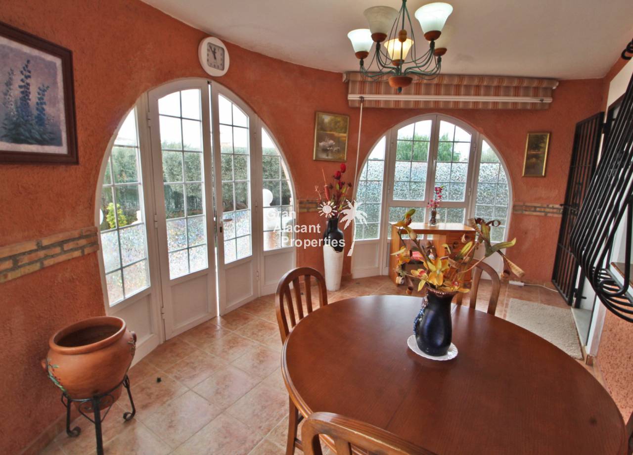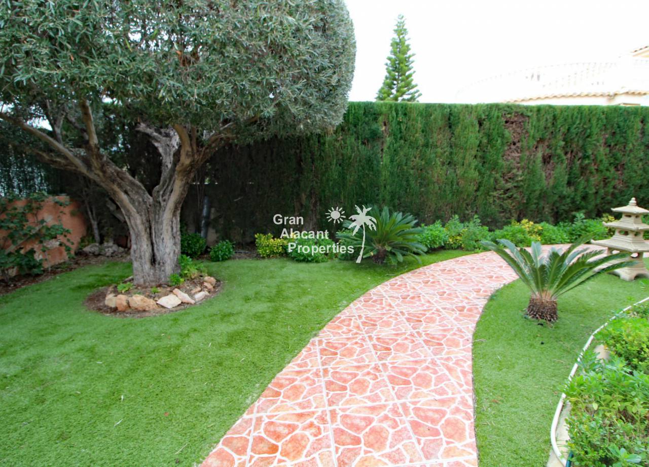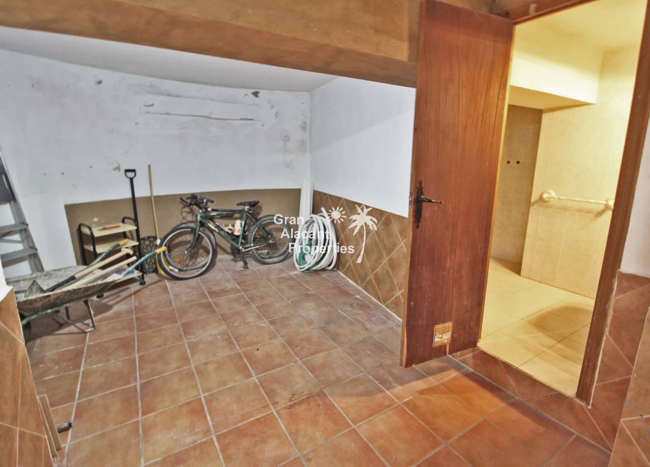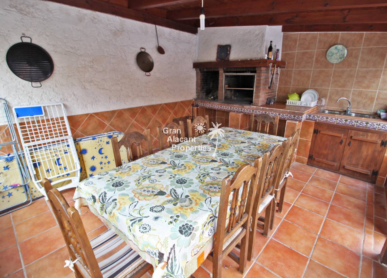 Outside, the well established picturesque garden (400 m²) with various fruit trees, including lemons and olives for those cocktails... artificial grass (low maintenance), the garden offers plenty of space for entertaining or enjoying the year round Spanish sunshine. Best of all is the private swimming pool perfect for cooling off on those hot summer days.  There is also a summer kitchen / bbq / dining area to offer some respite from the mid day sun. This villa also has a unique feature, access to the solarium with panoramic views, this can be accessed via an external staircase and / or the first floor master bedroom, which means that guests do not need to go through the first floor master bedroom to see the views or enjoy the solarium.