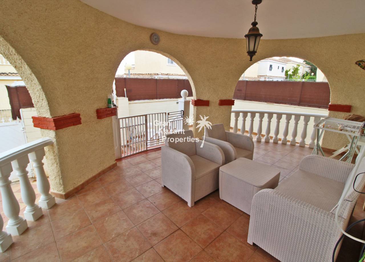Outside, the low maintenance garden (244 m²) offers the option of off road parking if required and plenty of space for entertaining or just enjoying the Spanish sunshine. Best of all there is a  private swimming pool perfect for cooling off on those hot summer days. Built in 2006, this villa features many, many extras including security bars, satelitte TV, window screens, ample storage and off road parking.