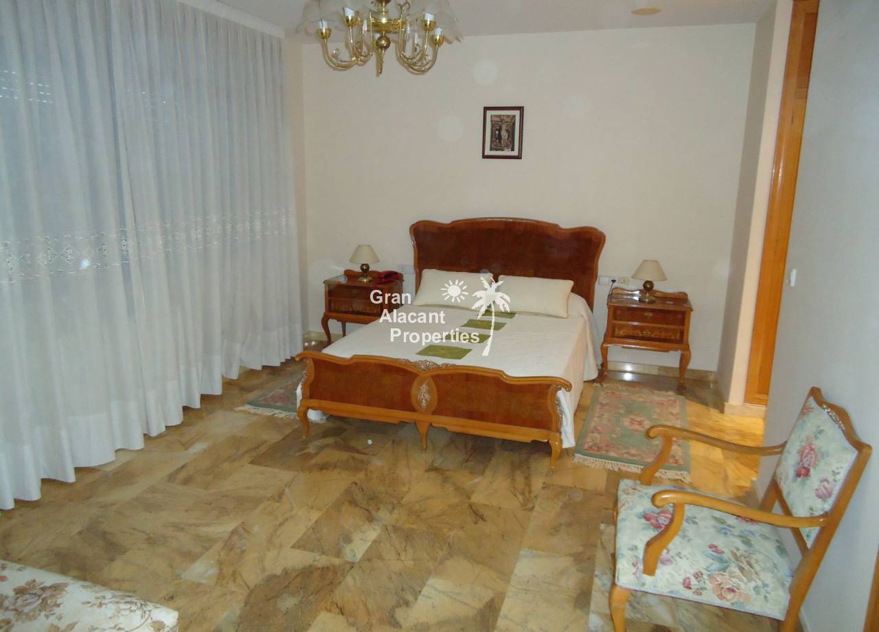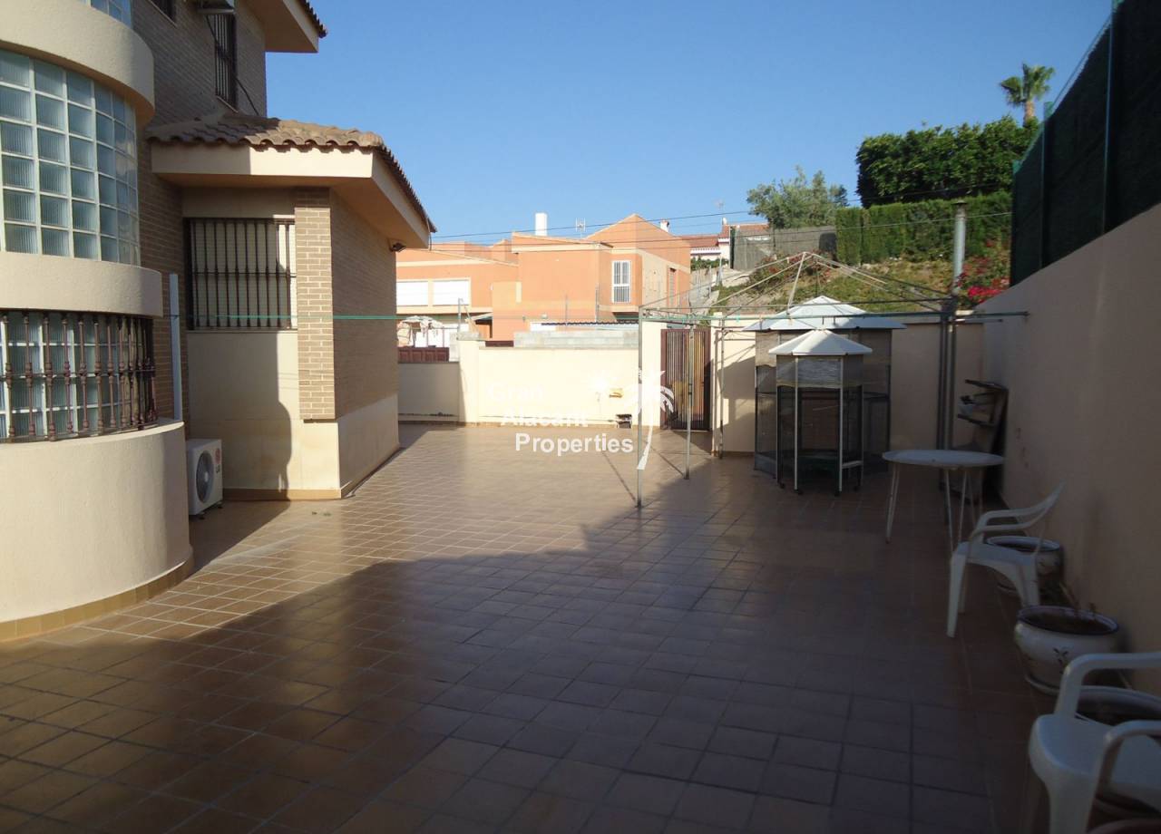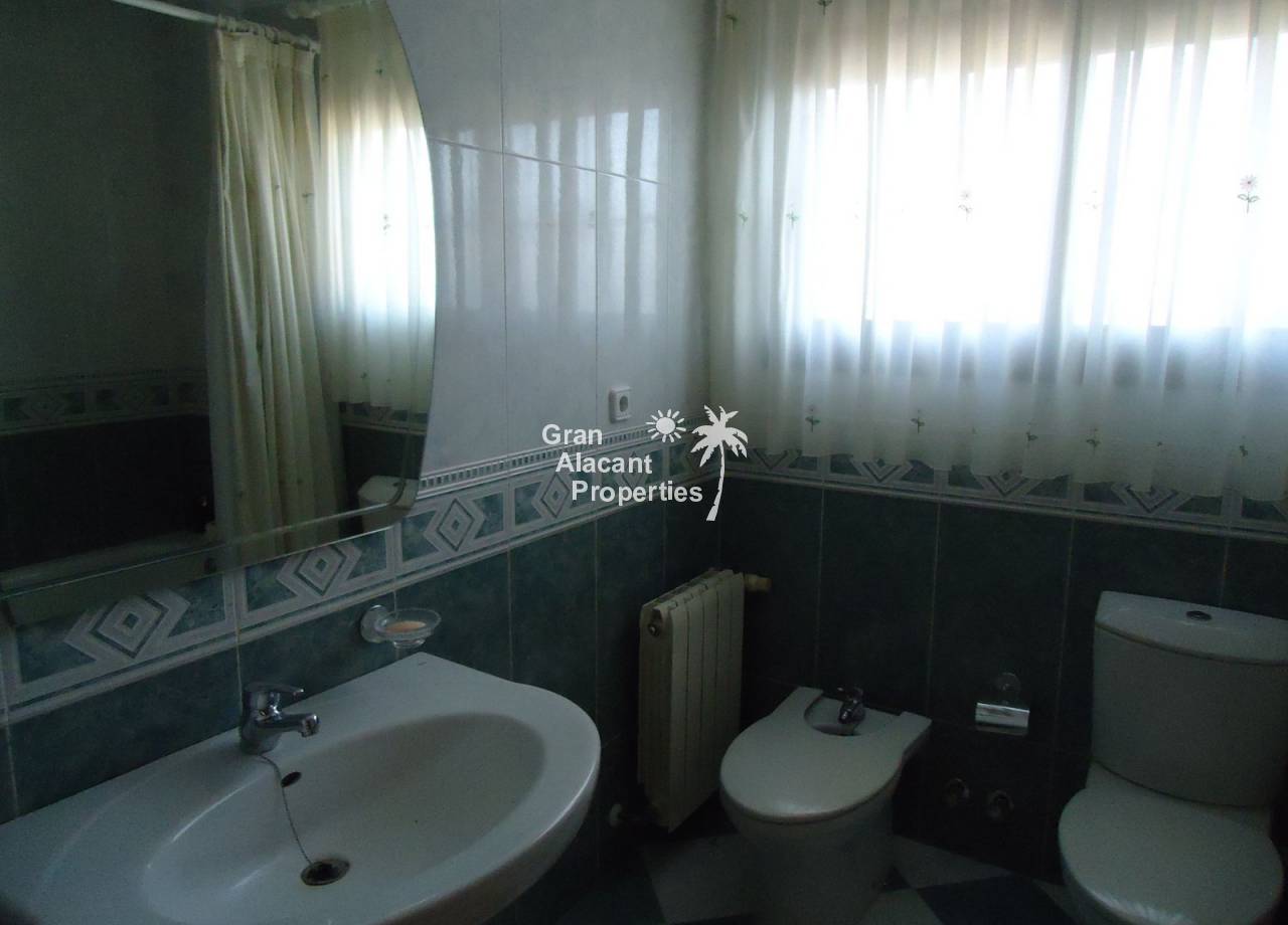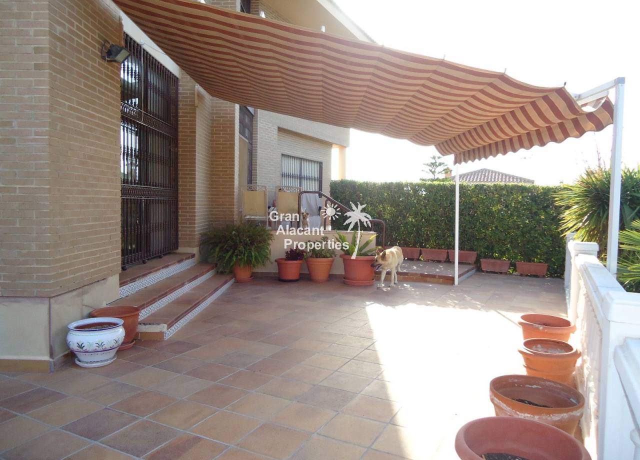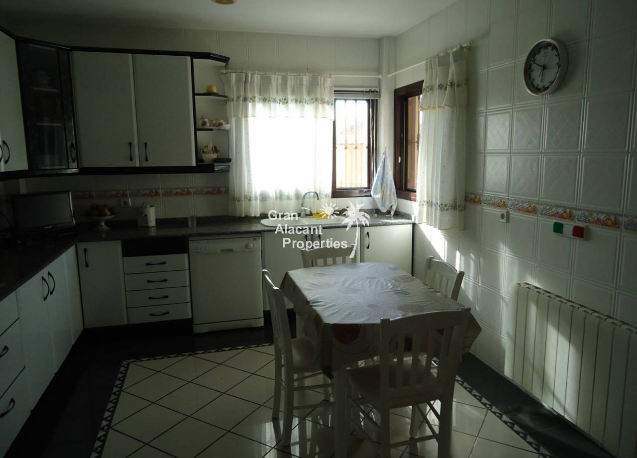 Hot/cold air conditioning, a diesel central heating system, a fully furnished and equipped kitchen with appliances included. Interior carpentry is in oak and exterior lacquered aluminum, dark brown with double glazing, the floors are emperador marble and everything is done to the very highest of standards, this house must really be seen to be appreciated. Very close to urban bus stops and all services, in a residential development of villas in the outskirts (2 kilometers) of the populations of Mutxamel and San Juan de Alicante, just 6 kilometers from the city, 17 from the airport, 5 from a golf course and the beach.