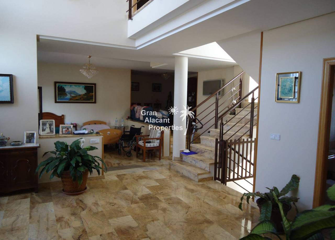 Gran Alacant Properties are proud to offer this large impeccable, independent luxury designer villa with private pool for sale in the area of Tangel de Mutxamel and San Juan de Alicante, with fantastic views to the mountains and large green areas.