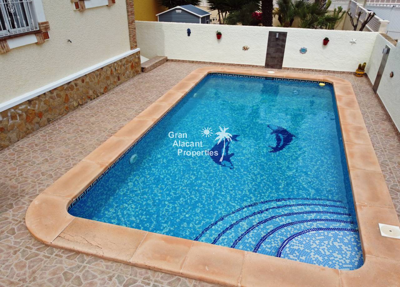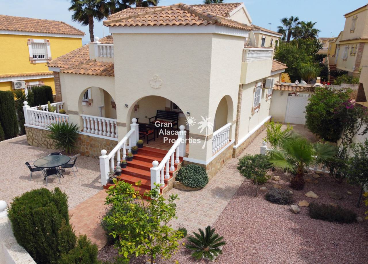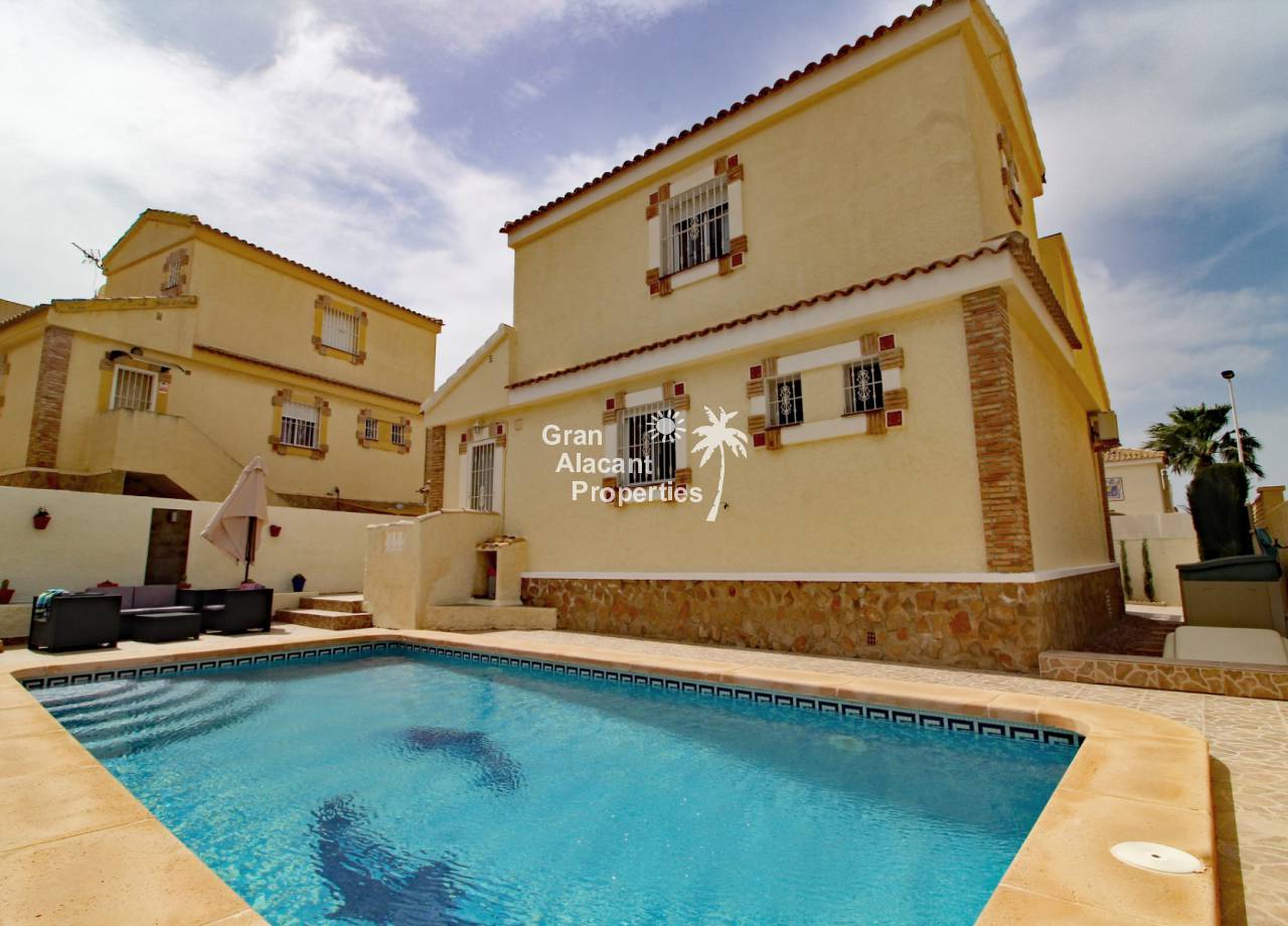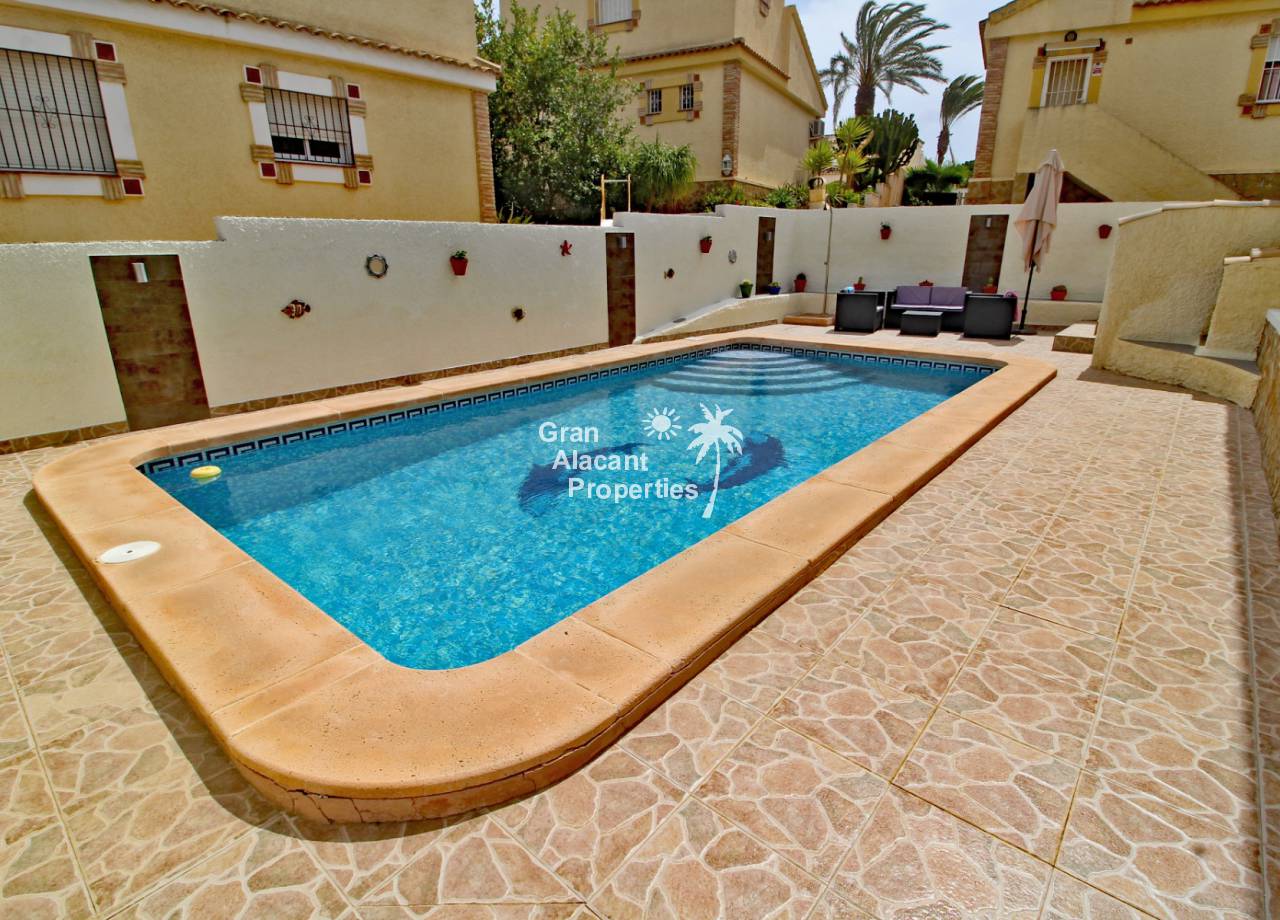Located in the sought after family orientated quiet cul-de-sac part of the  Monte y Mar bajo neighbourhood of Gran Alacant on Spain's sunny Costa Blanca, this gorgeous modernised detached "Torrean" style villa comes with a private swimming pool and many extras.