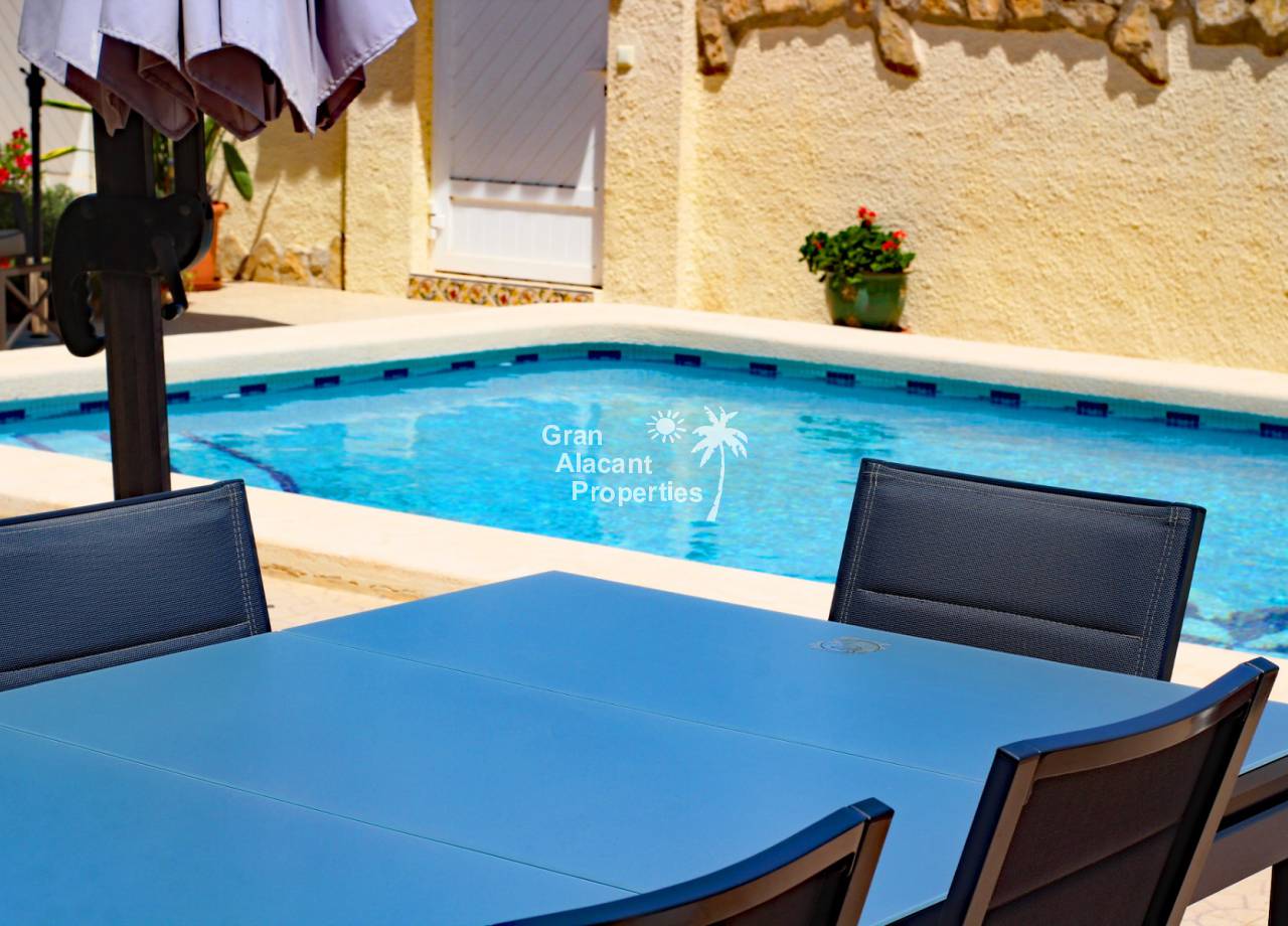 Outside, the beuatiful mature garden (400 m²) offers plenty of space for entertaining or enjoying the year round Spanish sunshine , there are fruit trees and a BBQ area. Best of all is the private 8x4 swimming pool perfect for cooling off on those hot summer days. The beauty of this house is that you can actually walk all around it, so have 360 degree access to it, this means that you will always have sunshine and shade somewhere in your garden at some point of the day.