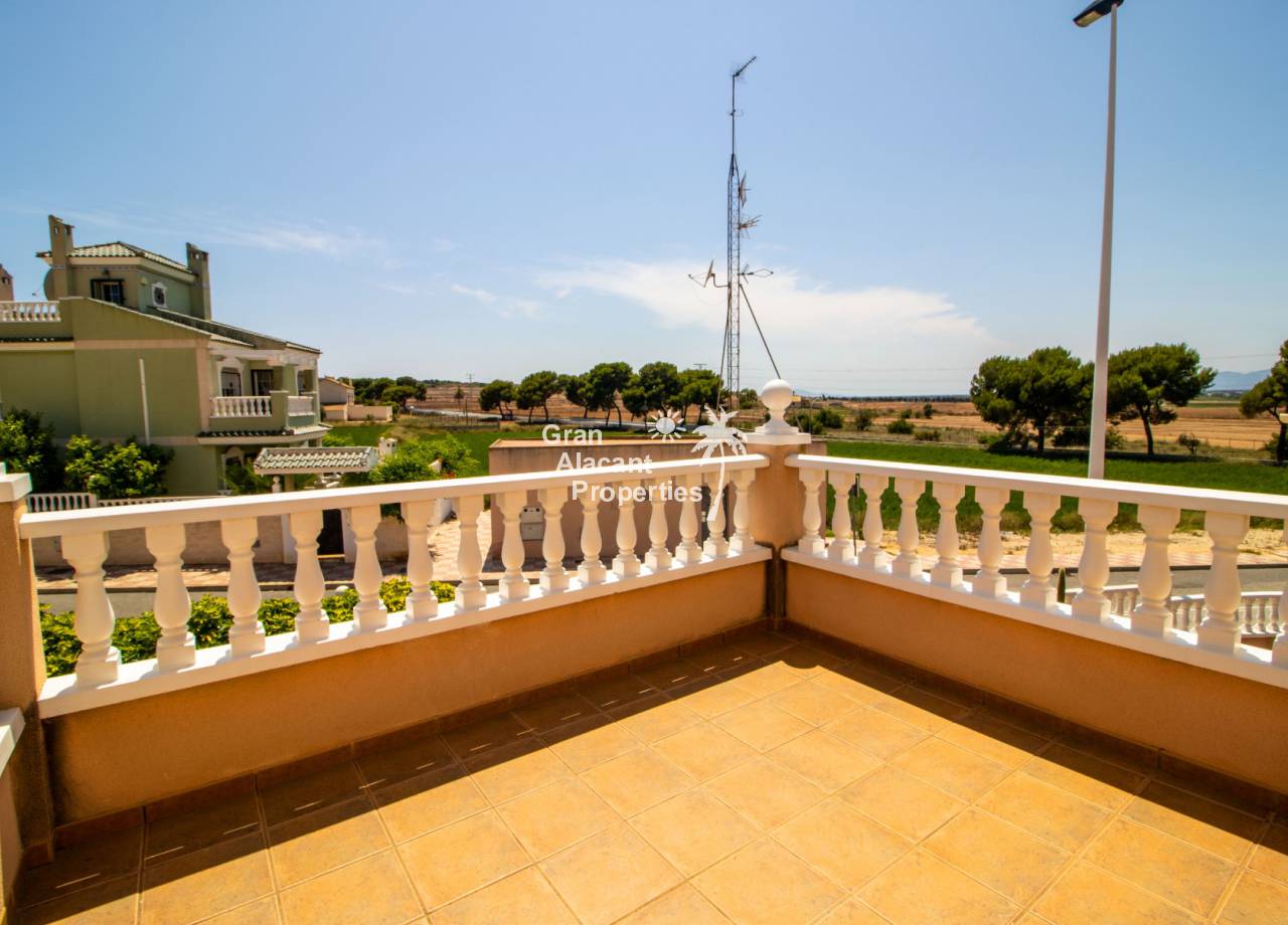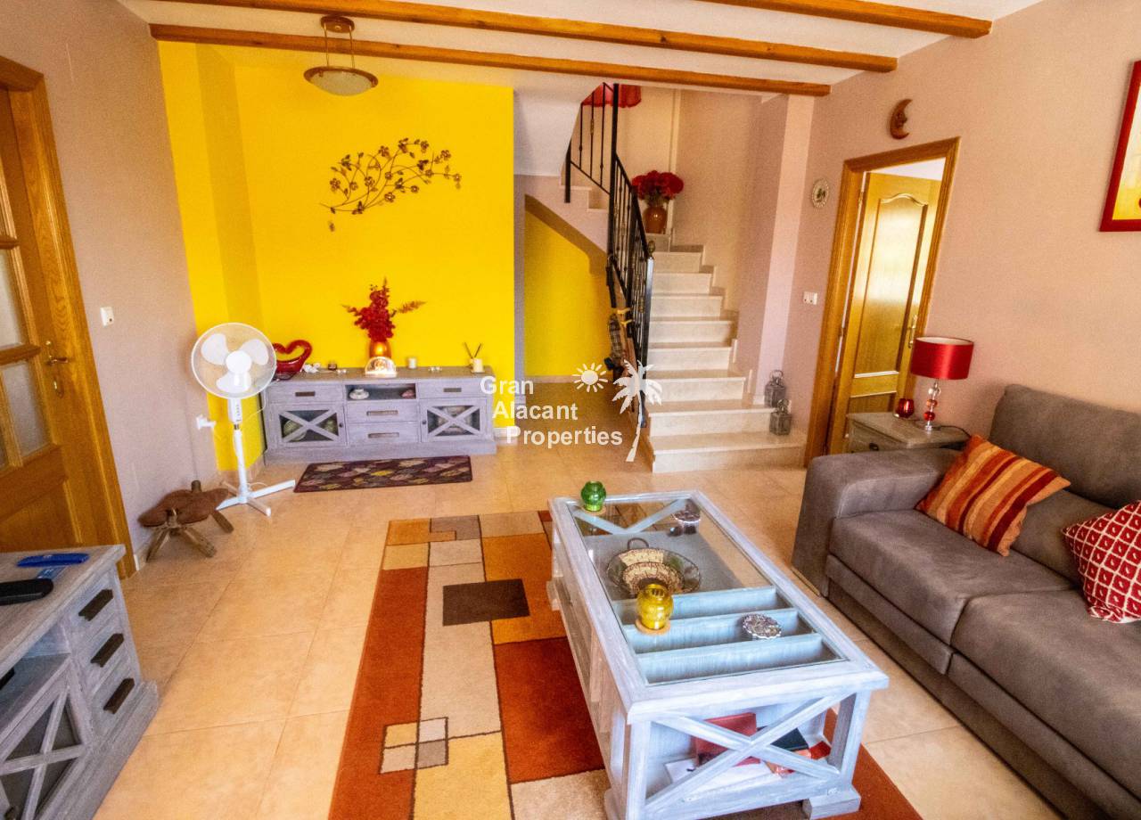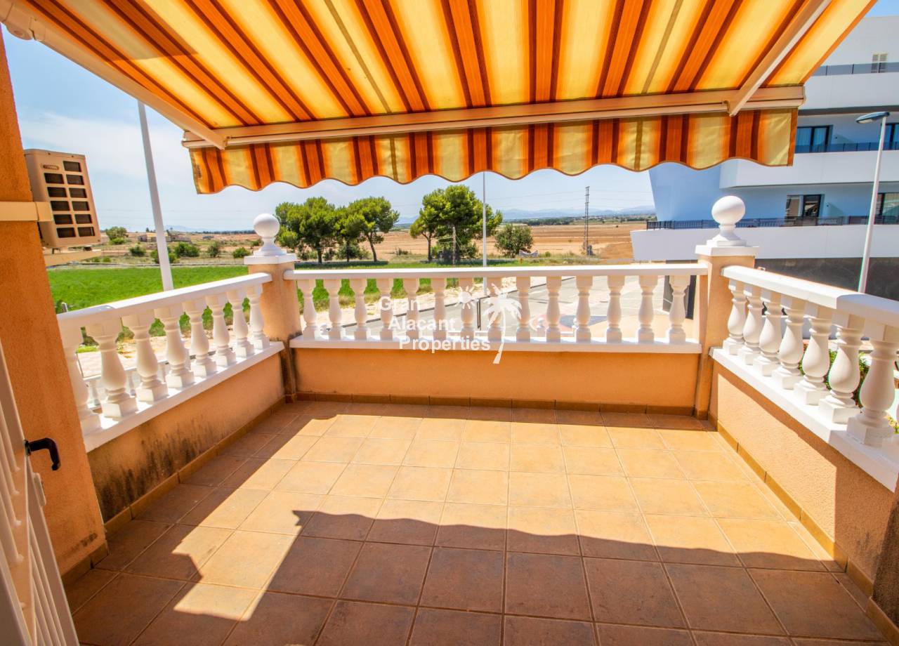 Well presented south-west facing semi-detached house located on the sought after community of Puerto Marino in Gran Alacant on Spain’s sunny Costa Blanca. This house features 3 x double bedrooms (1 bedroom on the ground floor currently used as a dining room) 1 x en-suite and 2 family bathrooms, a combined living and dining room, a large low maintenance garden (front, side & rear of the house) with space for a private pool should the new owner decide to install one, a BBQ, a covered front porch, a balcony on the master bedroom, a second balcony and an independant kitchen with utility area. There is double glazing throughout, toldos, air-conditioning hot & cold (x 3 machines), security bars, ceiling fans and window screens The house is built to a good standard and comes with many nice features. There is also access to 2 communal swimming pools and a childrens play area. The house is sold furnished and equipped, so ready to move into and start living the dream.