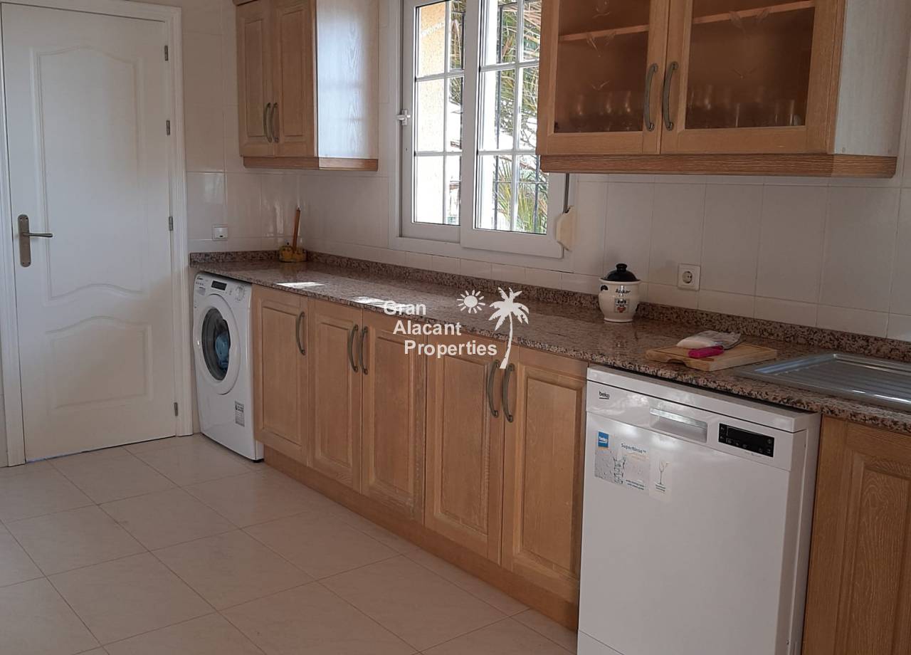Large living room with fireplace, a spacious hardwood kitchen, a large pantry, a laundry room, three large double bedrooms with fitted wardrobes, and two bathrooms. The exterior carpentry is double glazed and double locking, and the construction and finishes are of high quality.